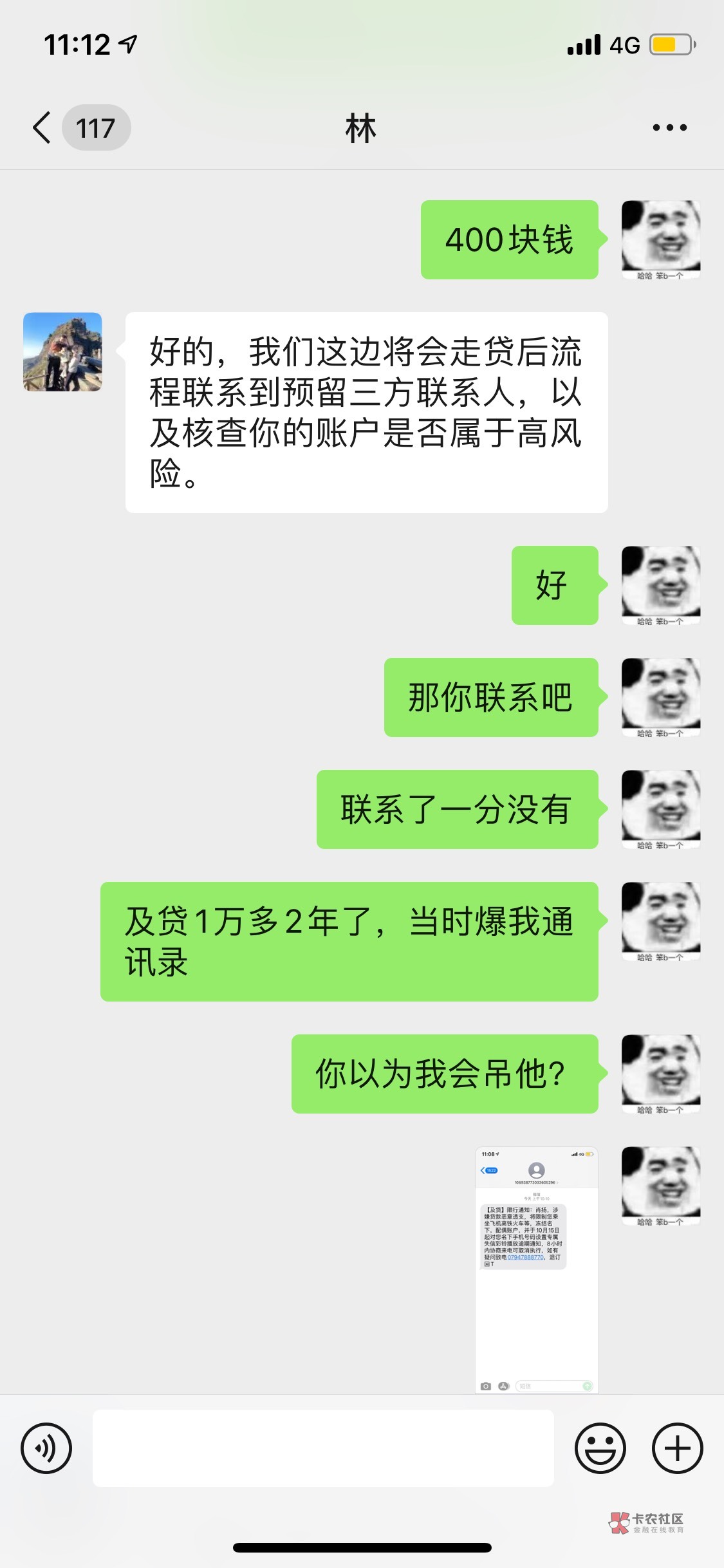 我怕个毛,我就是给他说声让他别在我这浪费时间了,京东的给我全部减免我都没同意好友,我会怕?