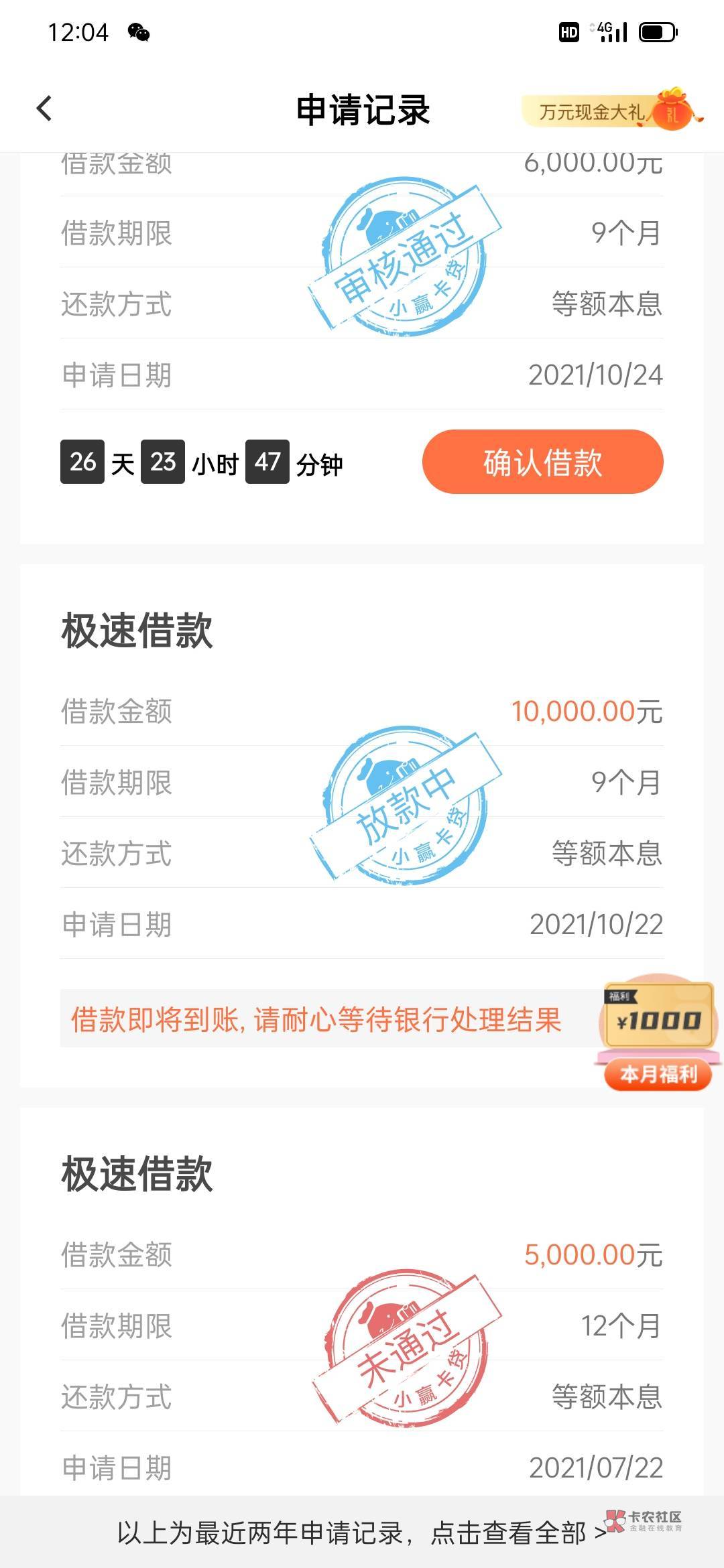 到账了。意外!