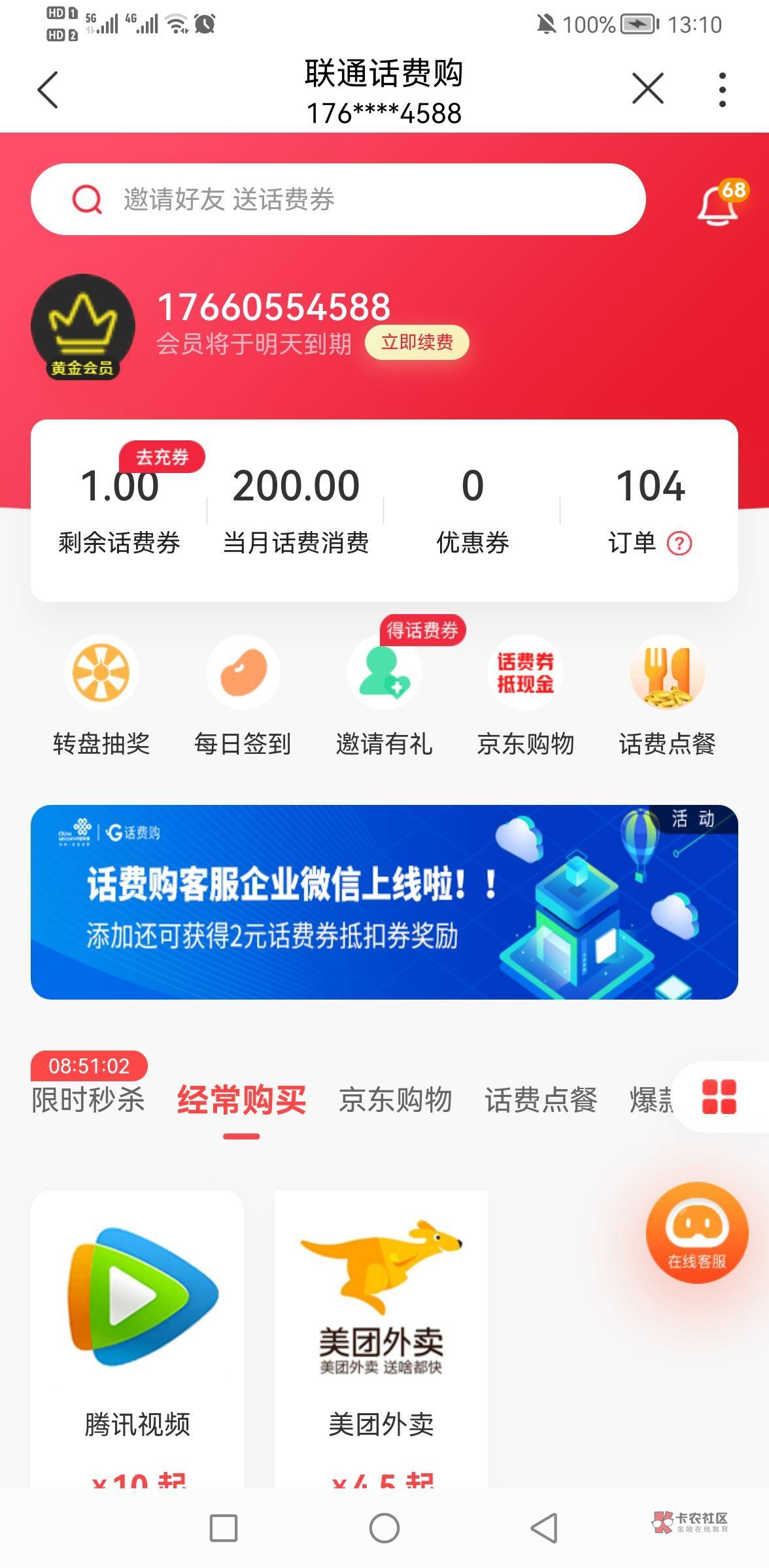 为什么我买50话费券都买不了啊???
