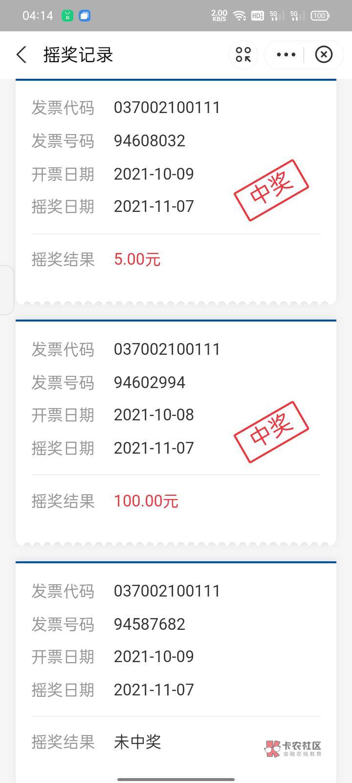 我中了个50