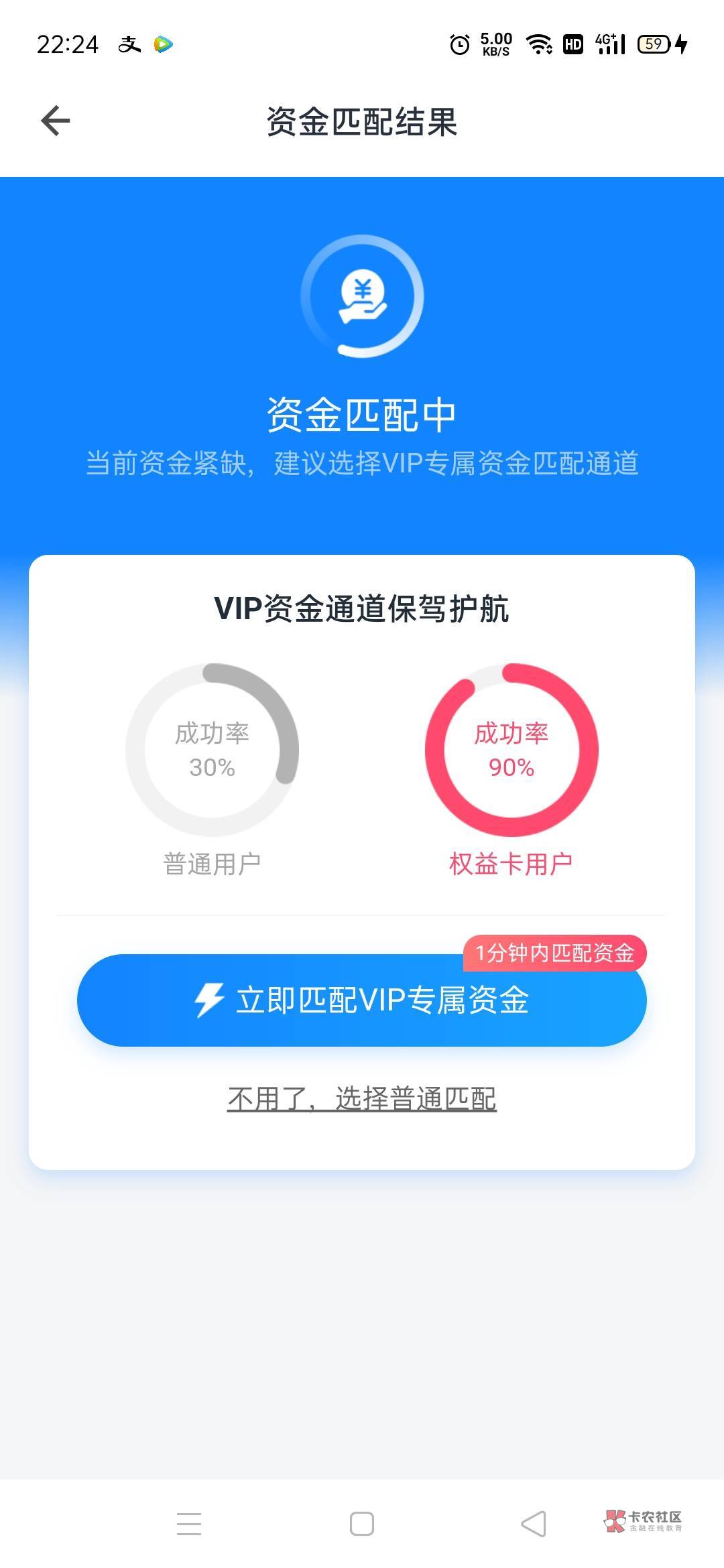 我都一个小时了,,还匹配不到,我看悬了,第一次出额度