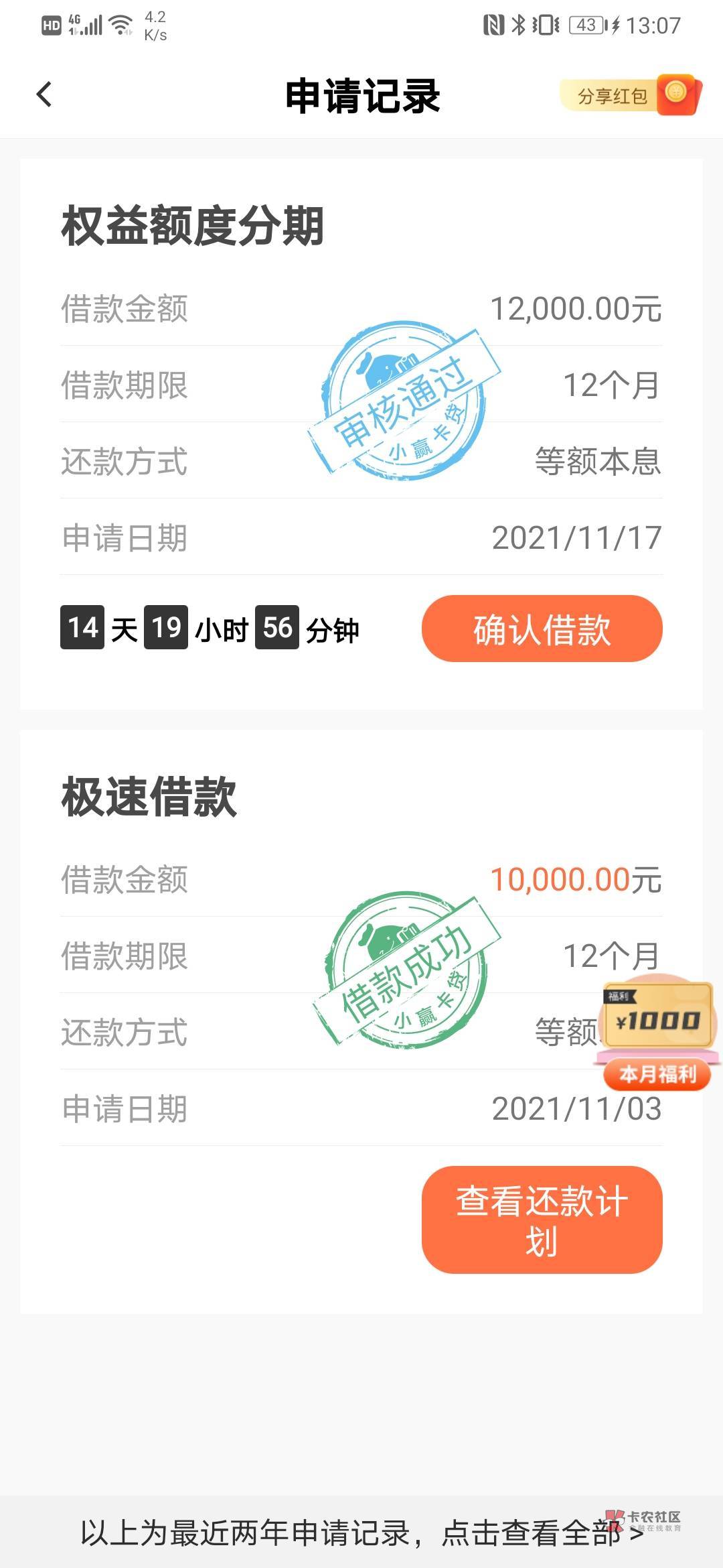 当月还一期极速第二天就可以出了 不用等到再还权益