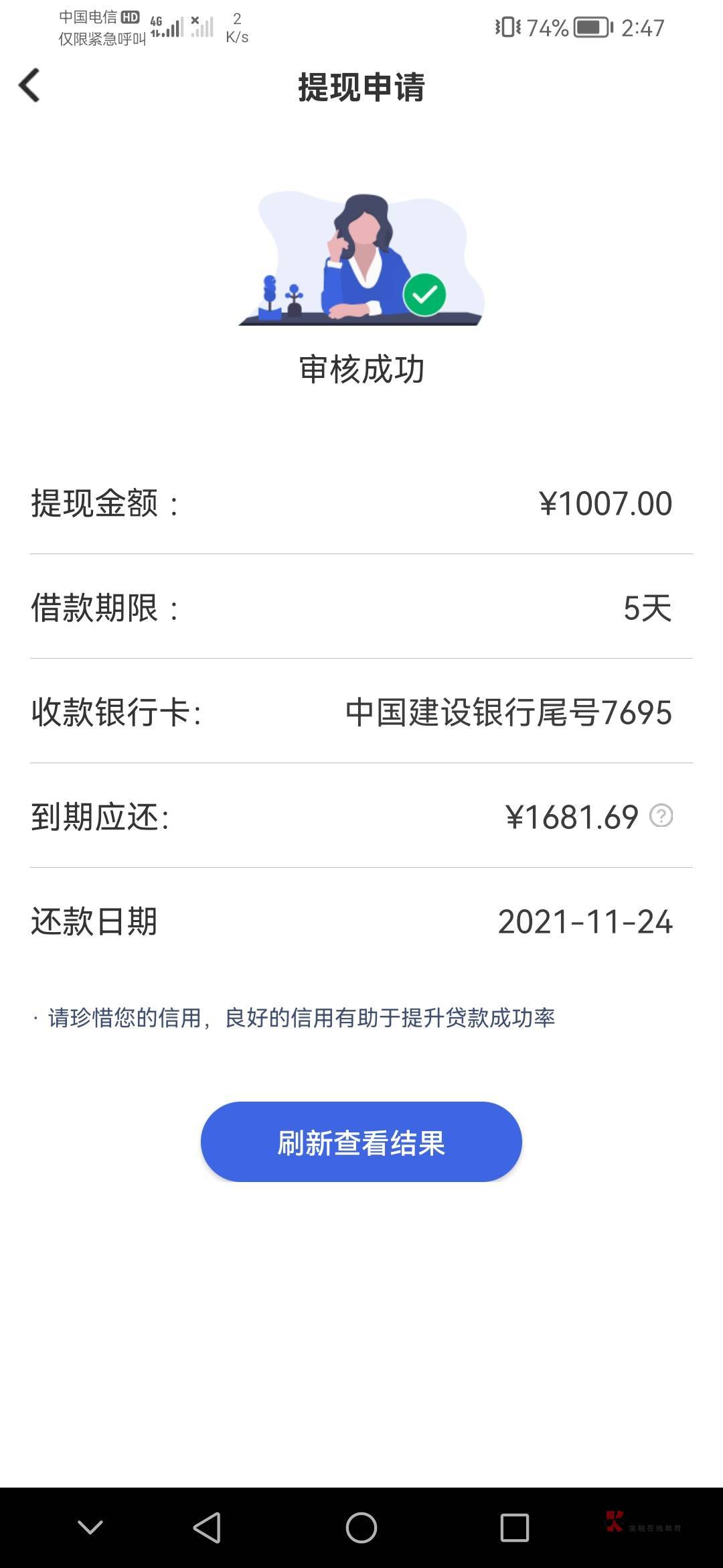 我看这个和小金橘子页面都是一模一样的,应该是一家的吧,你是小金桔拒了多久再重新申请的这个?我刚刚两个都下了都不行