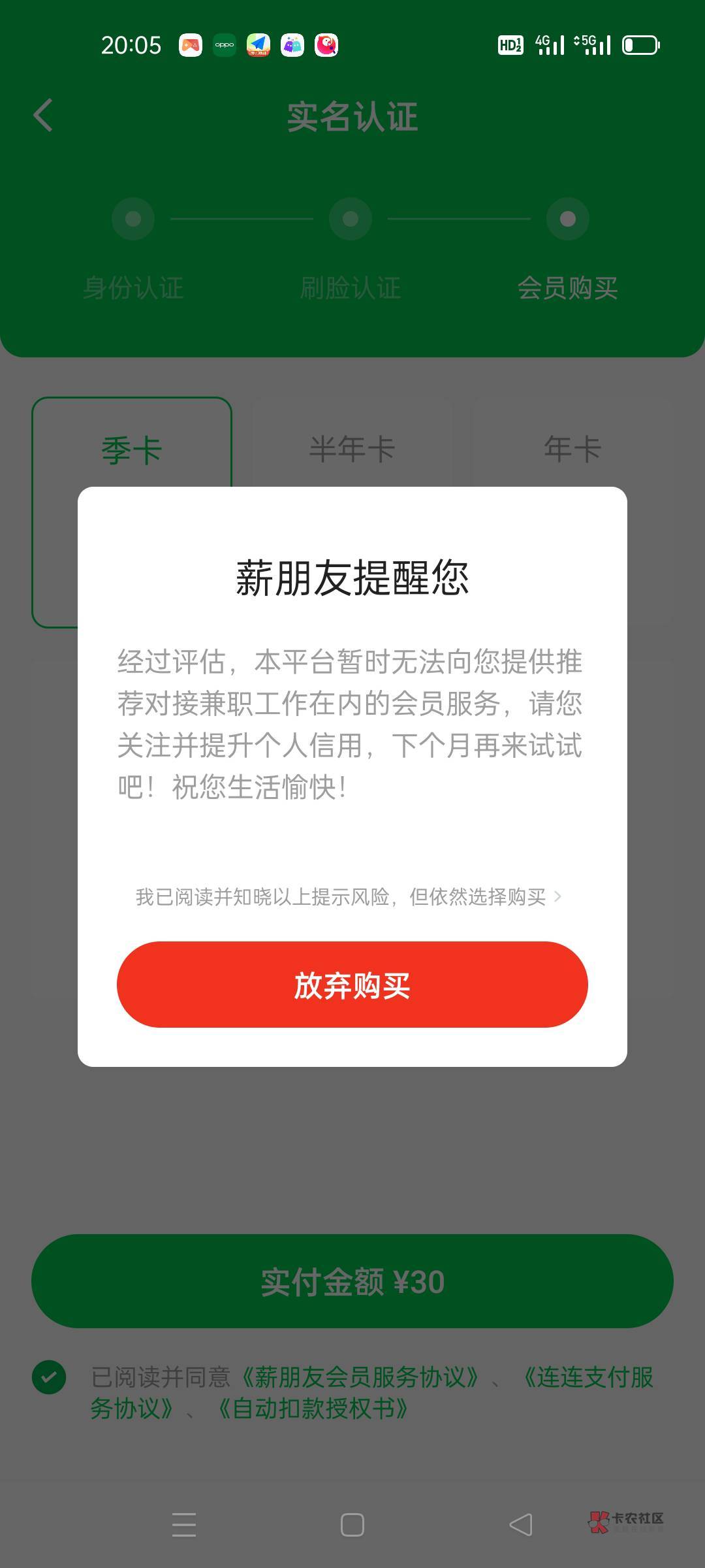 补充:会员30,申请时卡里扣,能扣就下