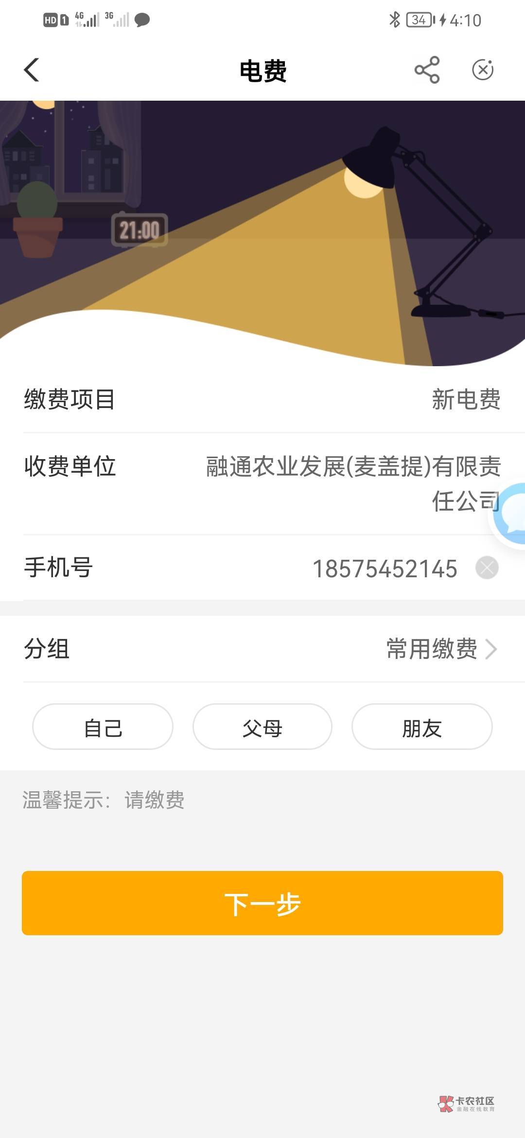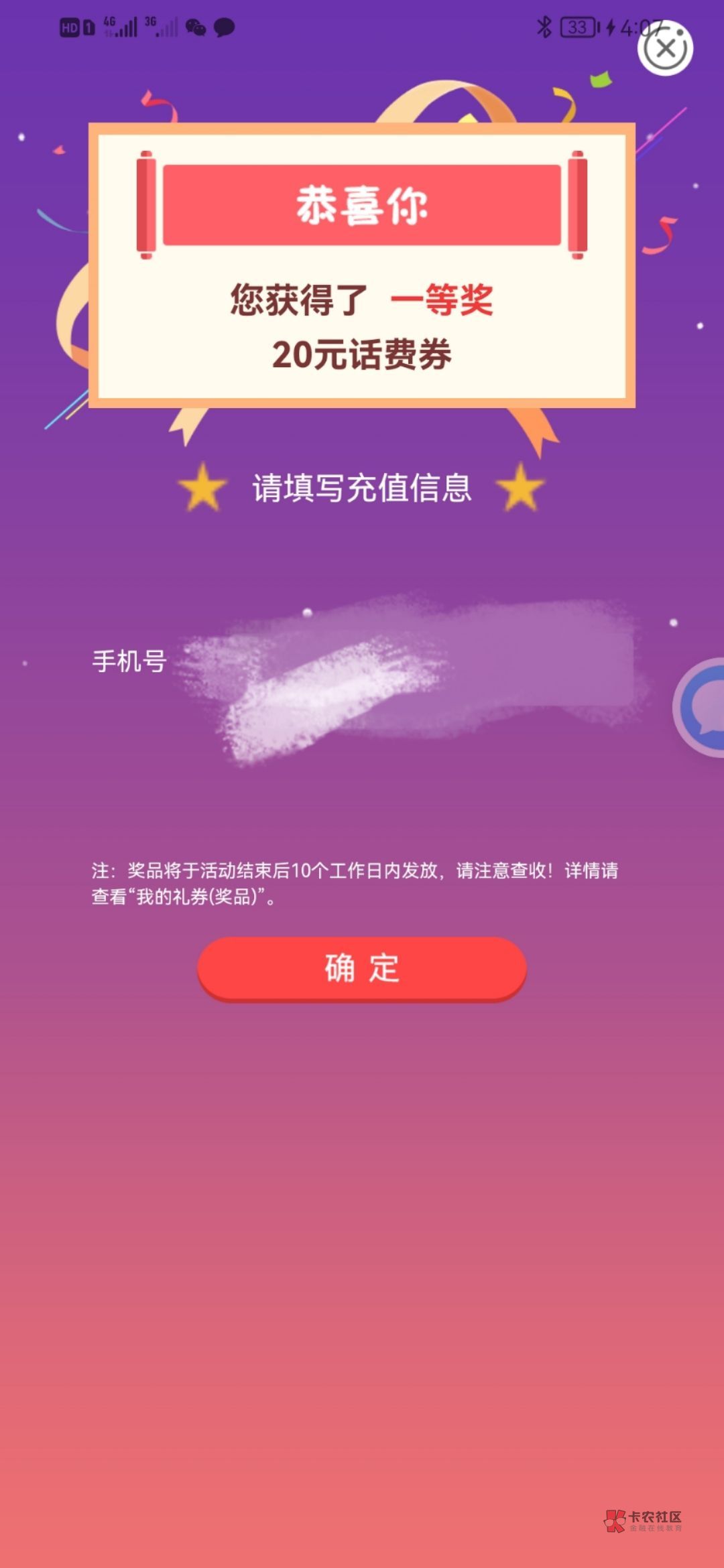 客什地区 电费 抽了20话费 感谢老哥