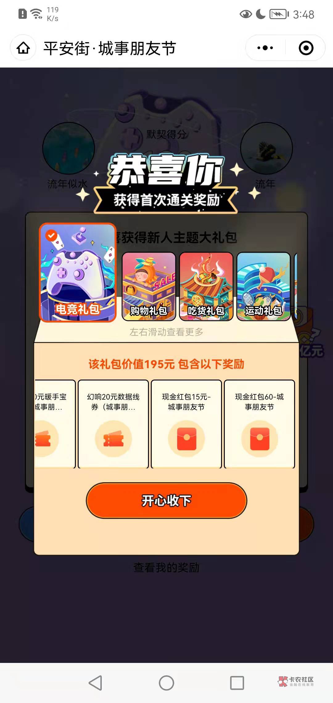 城市朋友节答题好礼 然后分享小号注册,参加一个活动,就有送了15元现金卷,有一类的话小号绑1类在得60 还有一个20的,全弄的话一个号95毛 多号多撸,