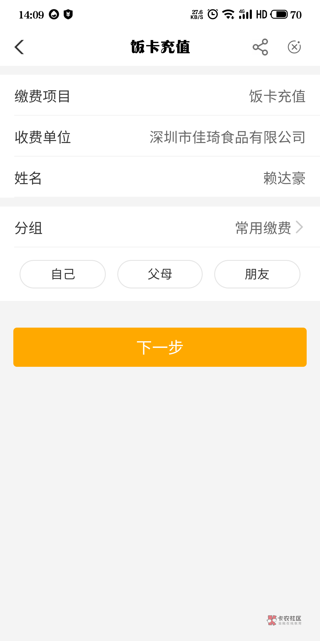 缴费的最后一个饭卡充值