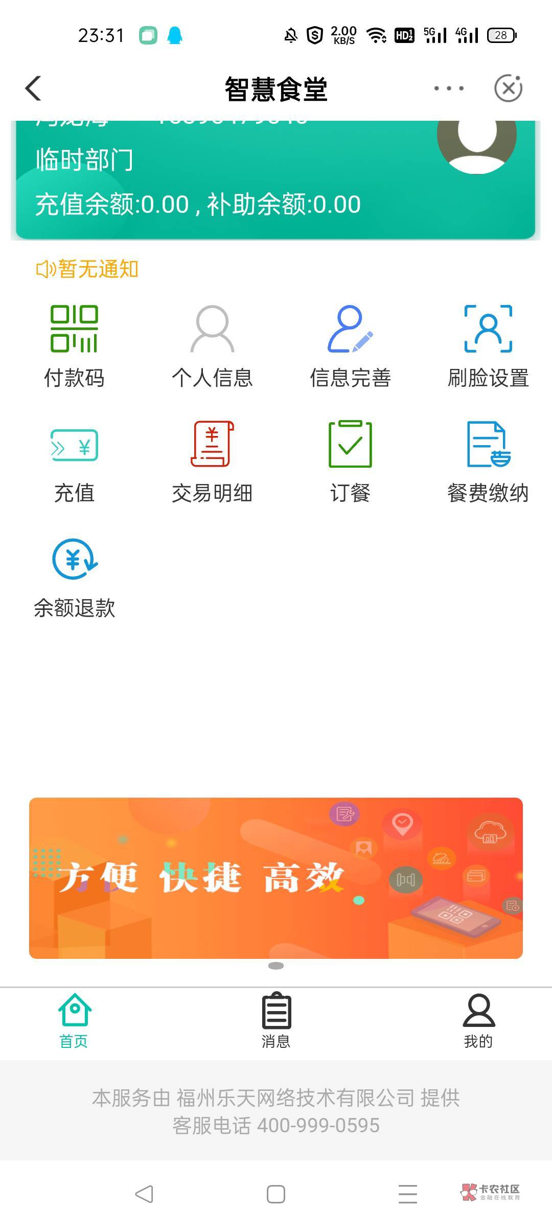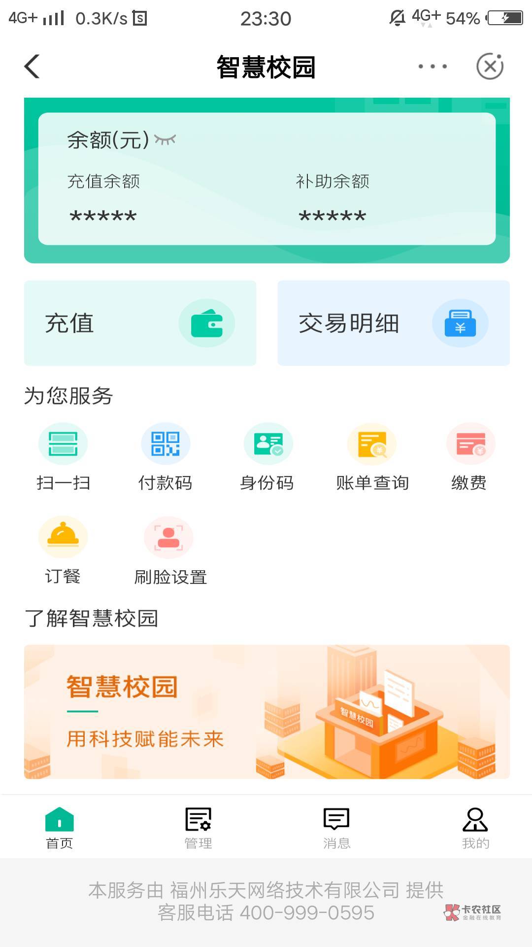 要先在校园里面注册智慧校园或者食堂,找个好像叫乐天的测试单位的注册。