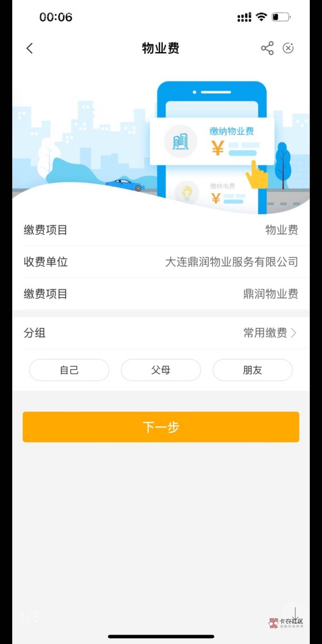 注册时选辽宁大连,物业费