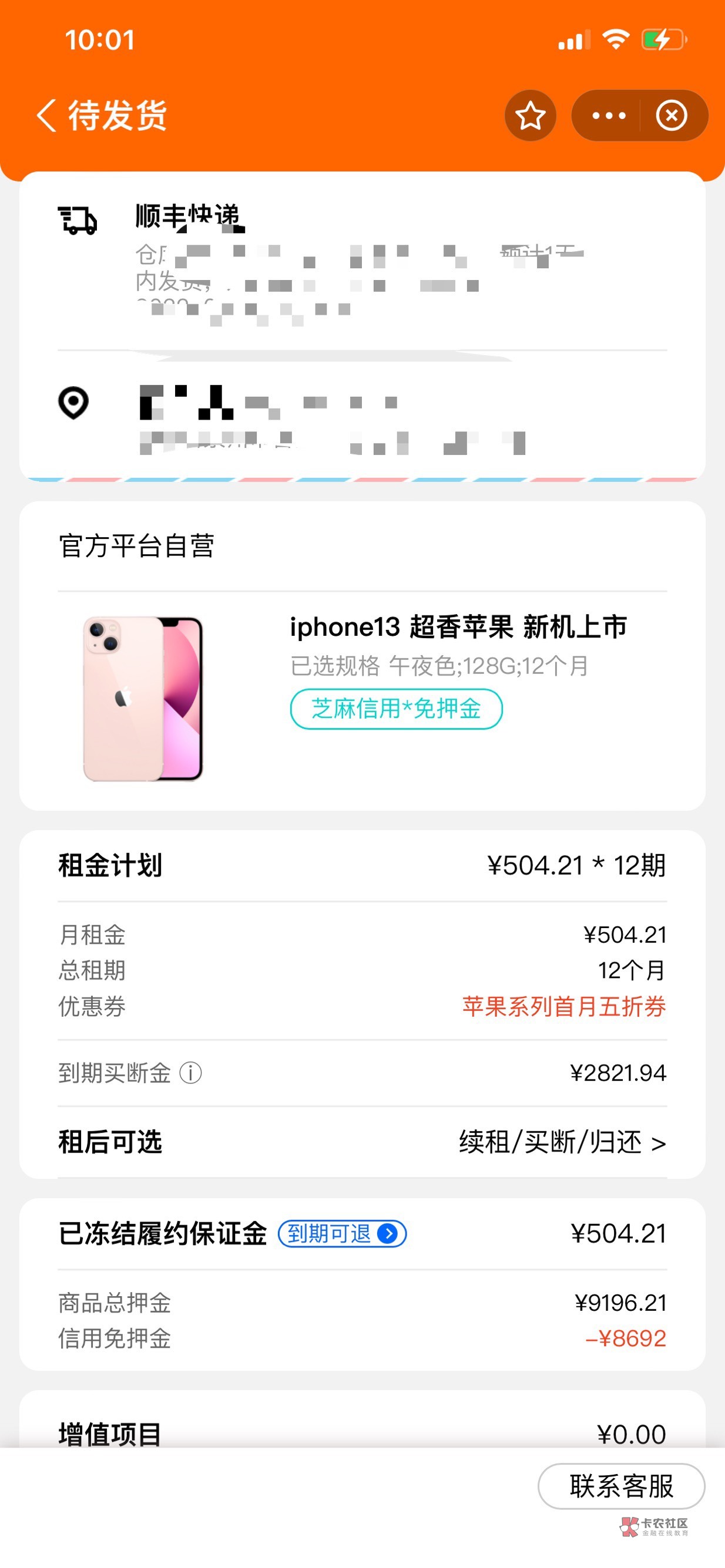 你应该看到了,租金一年6000,到期买断2821,加一起就是8821,远远超过了市场价,128的13网上买也就五千多,拿去套现最多卖四千多五千不到,算下来套了四千多要还8821,比网贷可厉害多了,不还还会被起诉,太狗了,这玩意儿尽量别碰,要人命