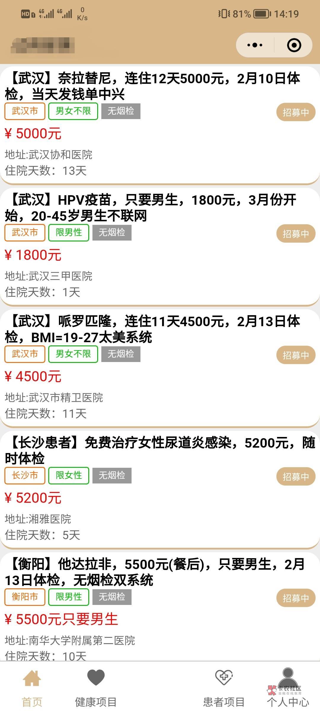 我做过不是你想做就能做 要30个人当天会来150个人竞争相当激烈 体检项目巨多 一个没达标或者超标就gg 一 ...