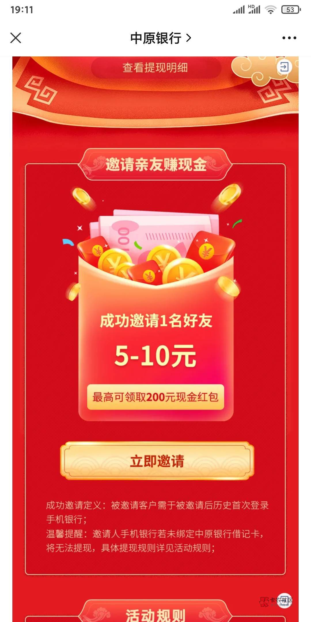 中原银行挺不错,上次中了一个88,自己两个手机号又撸了20