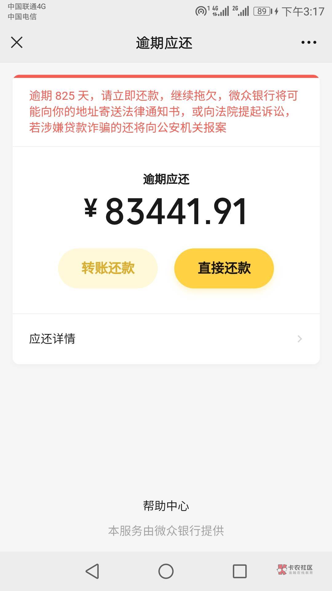 现在账单没过来过来了发给你们看看交通信用卡逾期本金利息24万多光大8万多兴业3万,线上2万安逸花2万 万卡1万……太多了