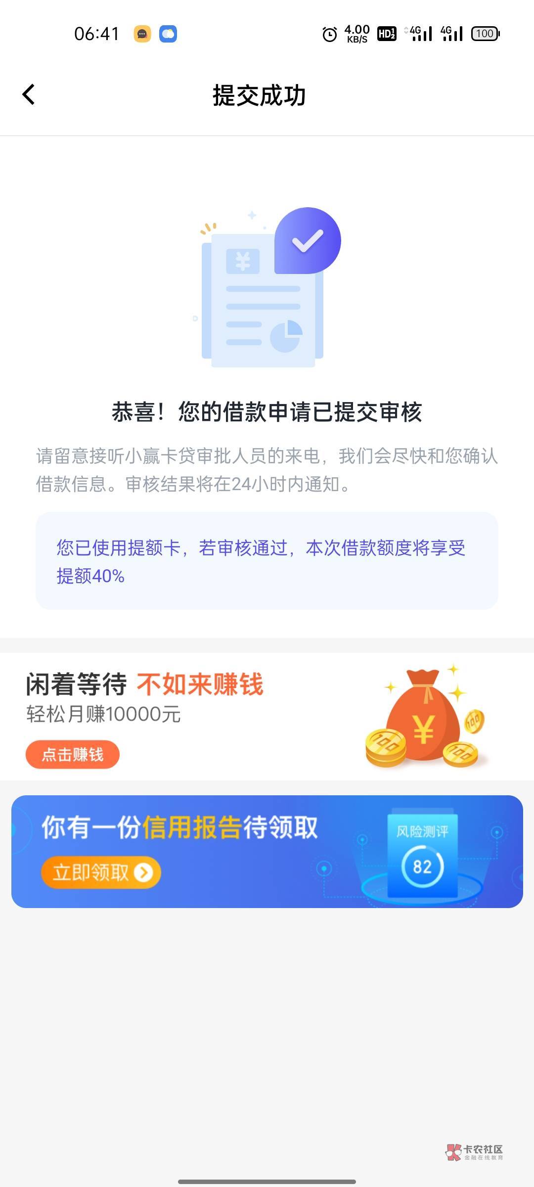 我加贷申请了2个,现在还没信。估计跟你一样了