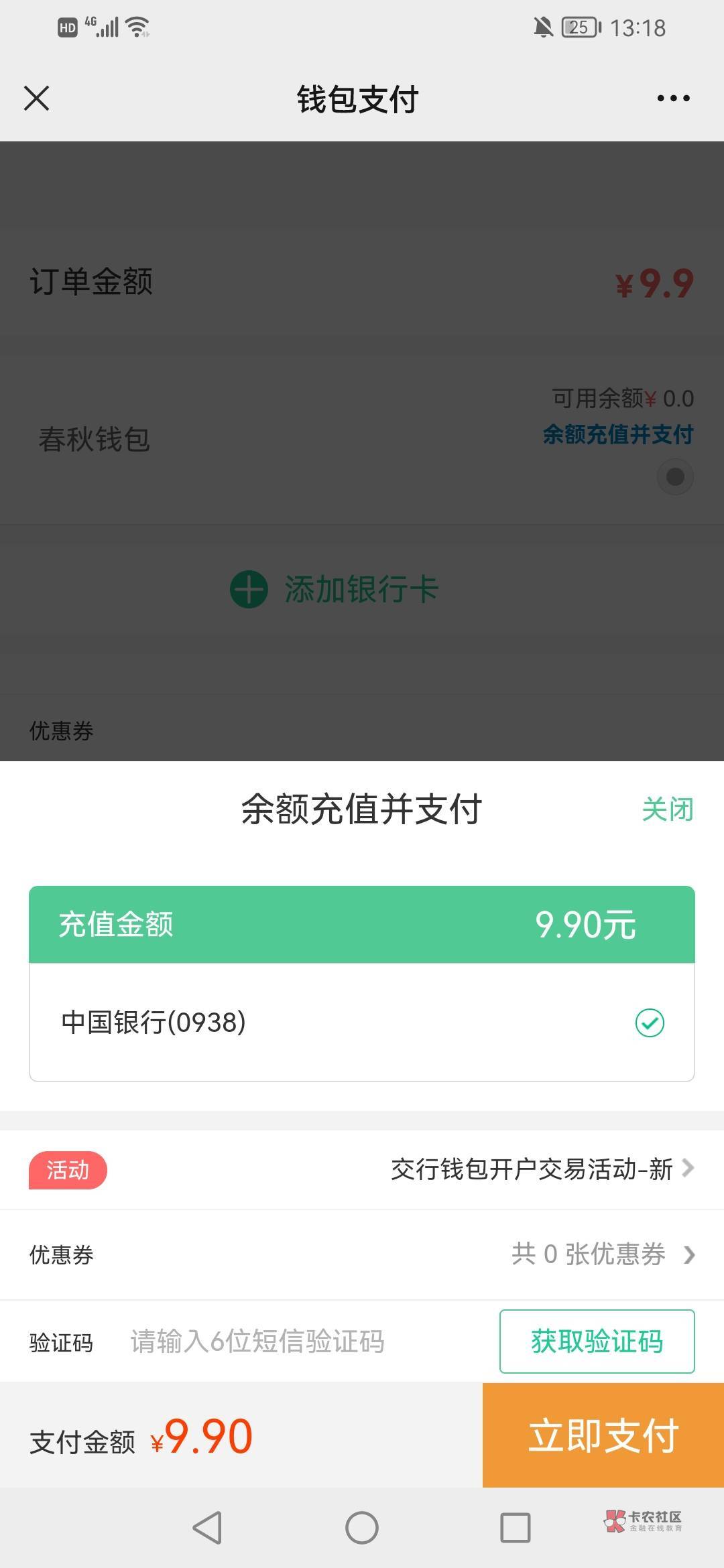 有,等几分钟就收到短信了