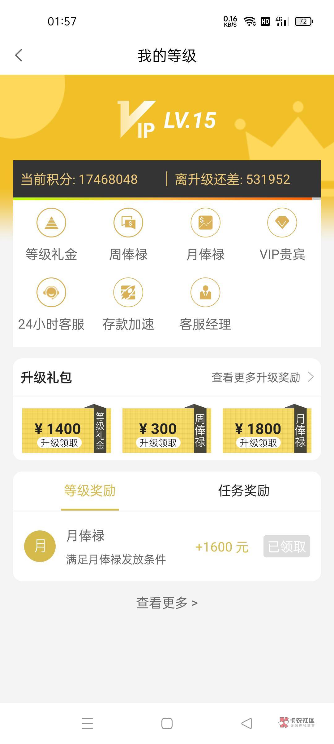 只值100,你这个要每月充值等值金额才可以领取