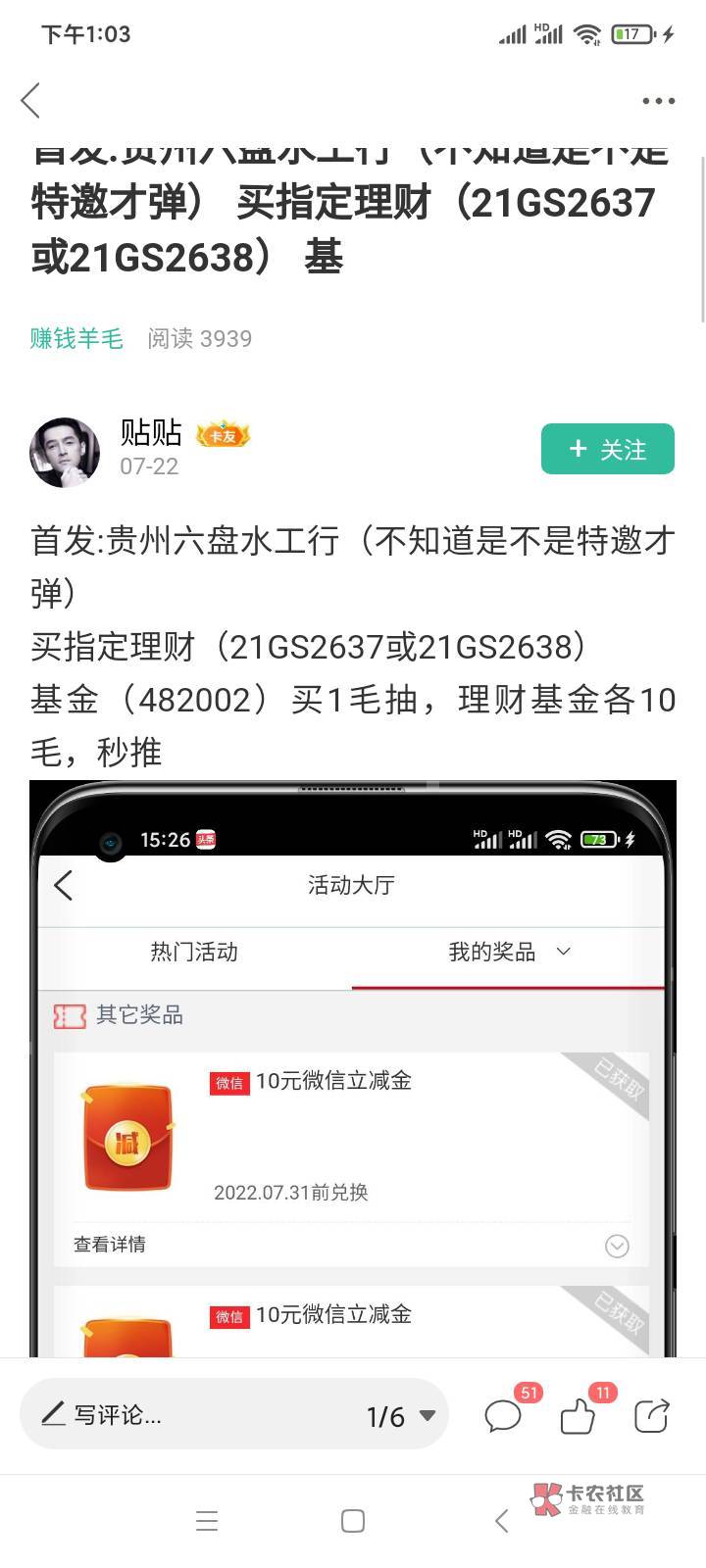 我大号搞了10小号搞了5。因为小号不能买理财。