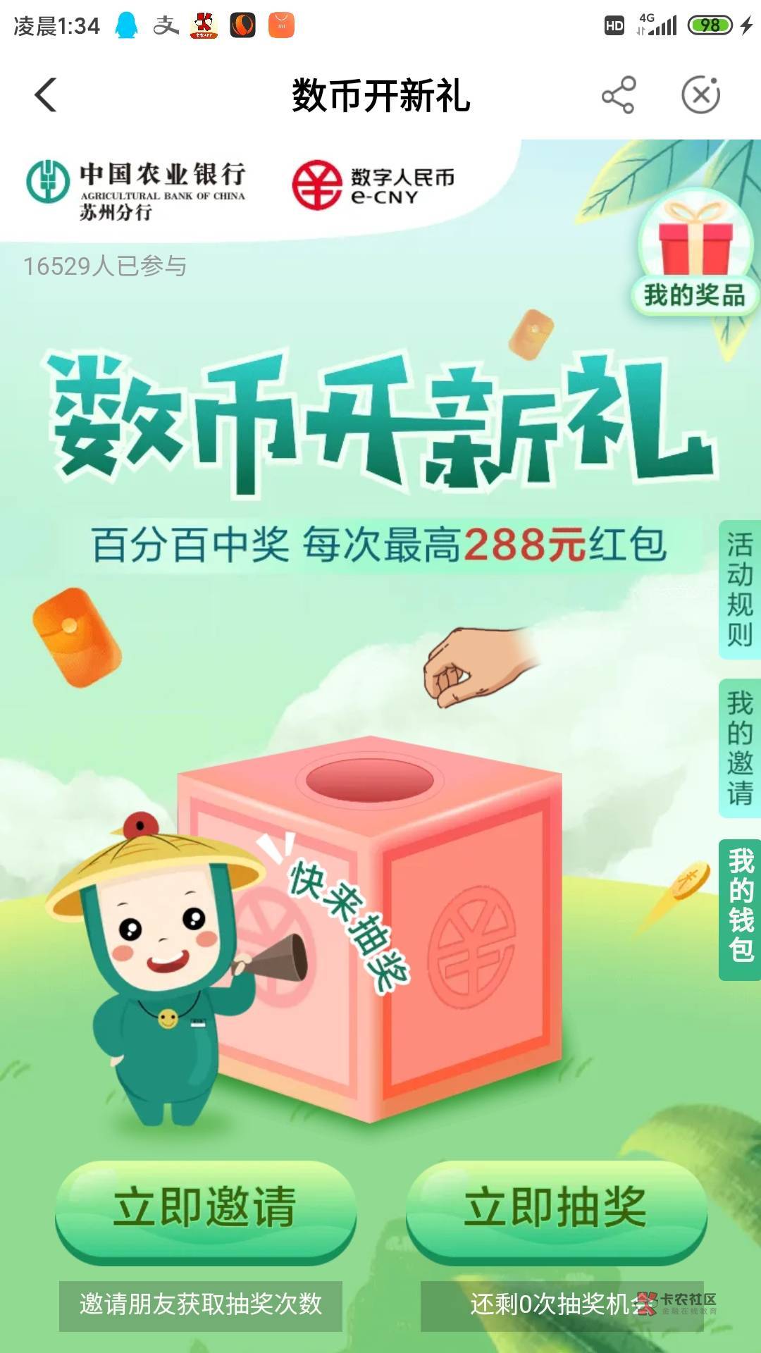 怎么多号的?我换号注册掌银进去就显示已经抽过奖了