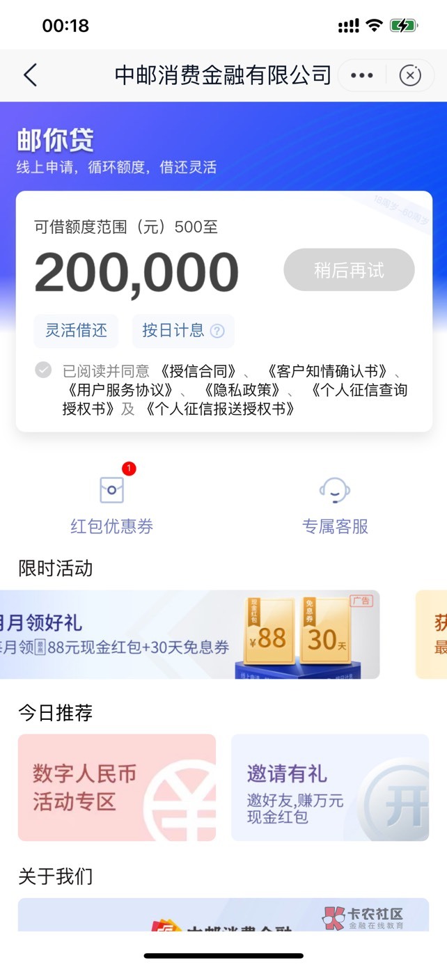 【邮储手机银行·邮你贷】嗨,送你邮你贷新人礼:有机会领10元现金红包+15天免息券!数量有限,先到先得!还可申请邮你贷最高20万元额度,快速审批!点击链接领取https://www.youcash.com/wechat-web/html/p.dNew/index.html?channelCode=9900970100000001&consolationPrizeId=28319749647d4fd8837c78449598e9da&oldMainUrl=37a4137554e54671a96f45cd66247b26&isReceived=0&mobileNo=166****2829&activityId=37a4137554e54671a96f45cd66247b26&inviterUserId=U1668747790124282#/NewGiftIntro