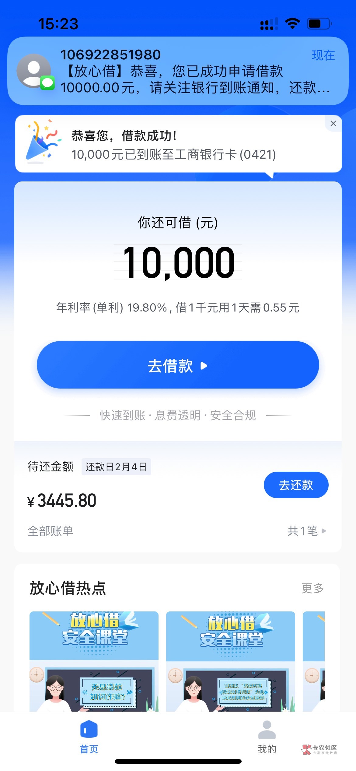 我放心借只有1000额度 月付到给我涨到5000了