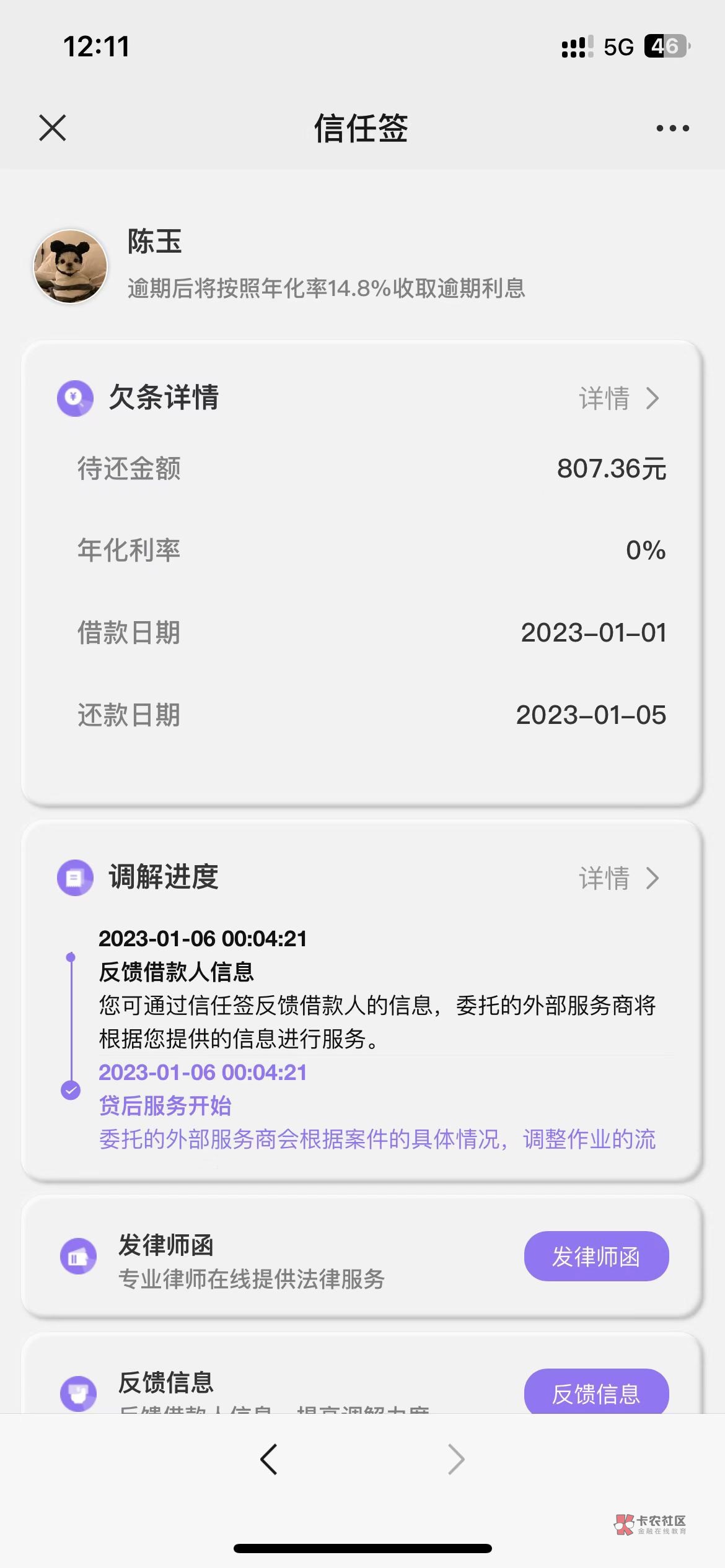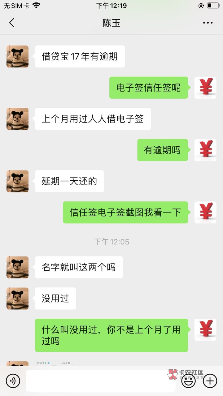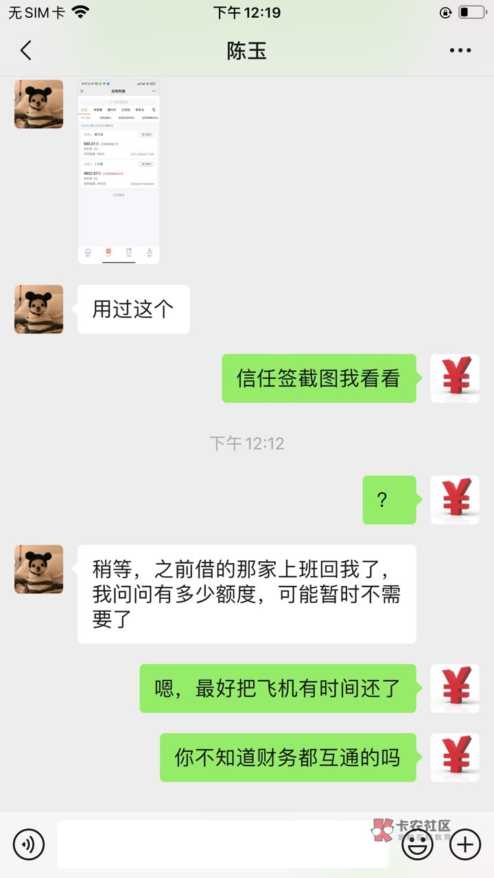 我知道他信任签逾期,还是飞机逾期,但他说没用过信任签,想让他给个信任签截图,结果他说之前找的那一家突然回他了,于是他找其他人借去了