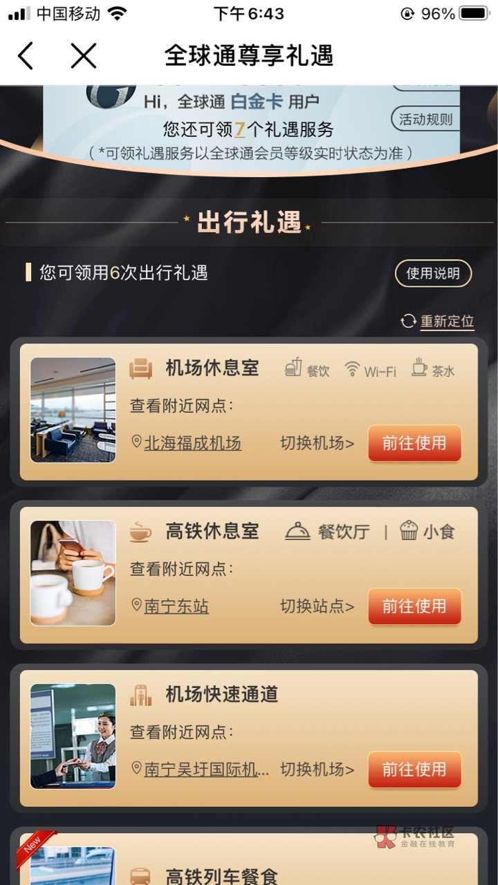 来吧,白金卡,好多次数,一次都没用过
