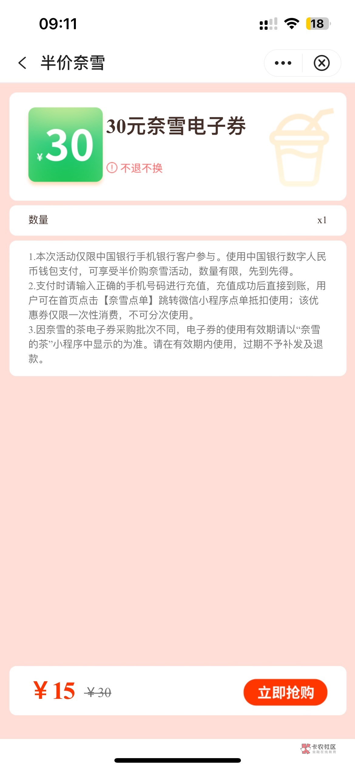 奈雪不值钱 6折左右 3块利润 两次6块 自己喝还行 月底应该能抢到50
