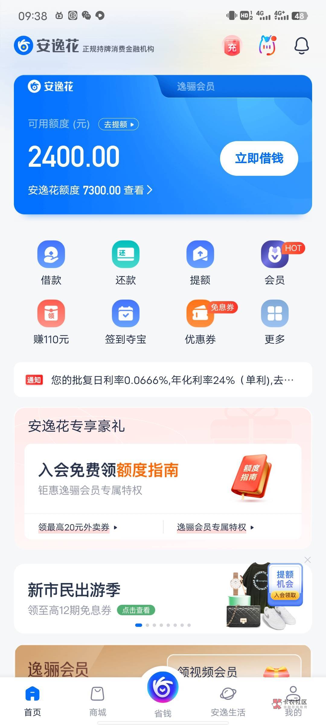 安逸花 结过一次 现在有额度提不了