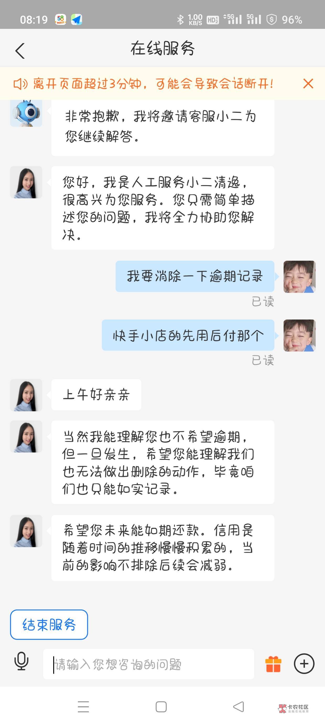 说卡里有钱没自动扣费,要求消除记录恢复芝麻分