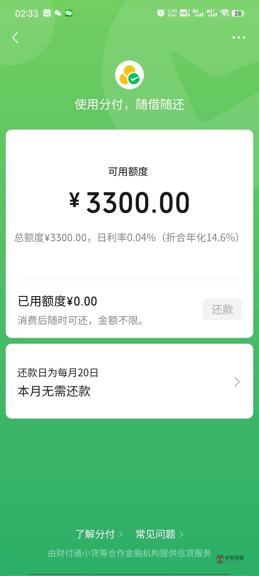 我的就是出来的,我这是经营码连信用卡都秒到。他要是说没有就是忽悠你