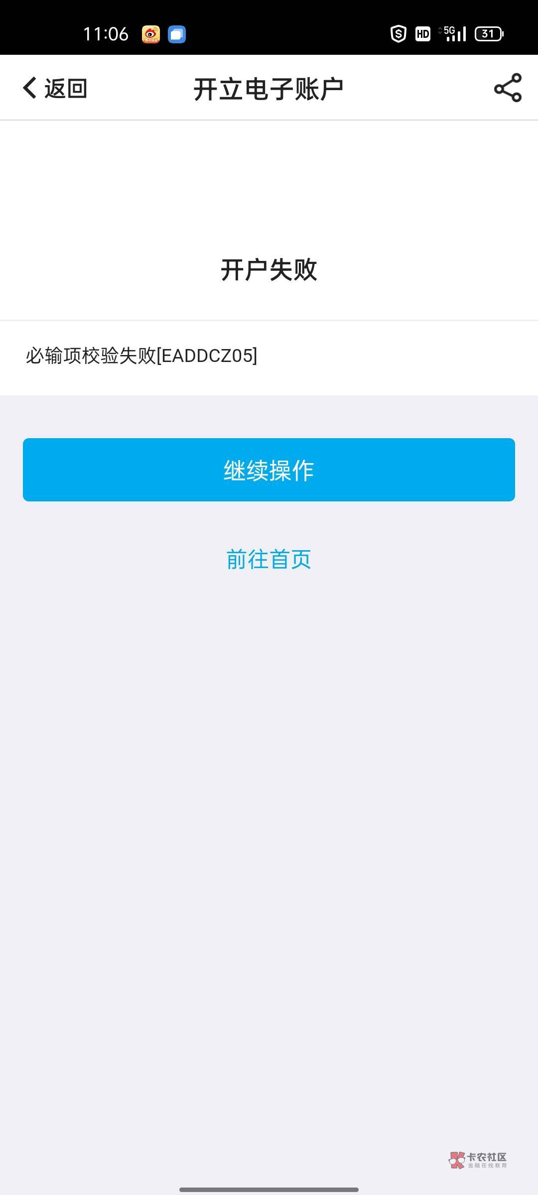 我怎么开不了卡呀 它显示这样