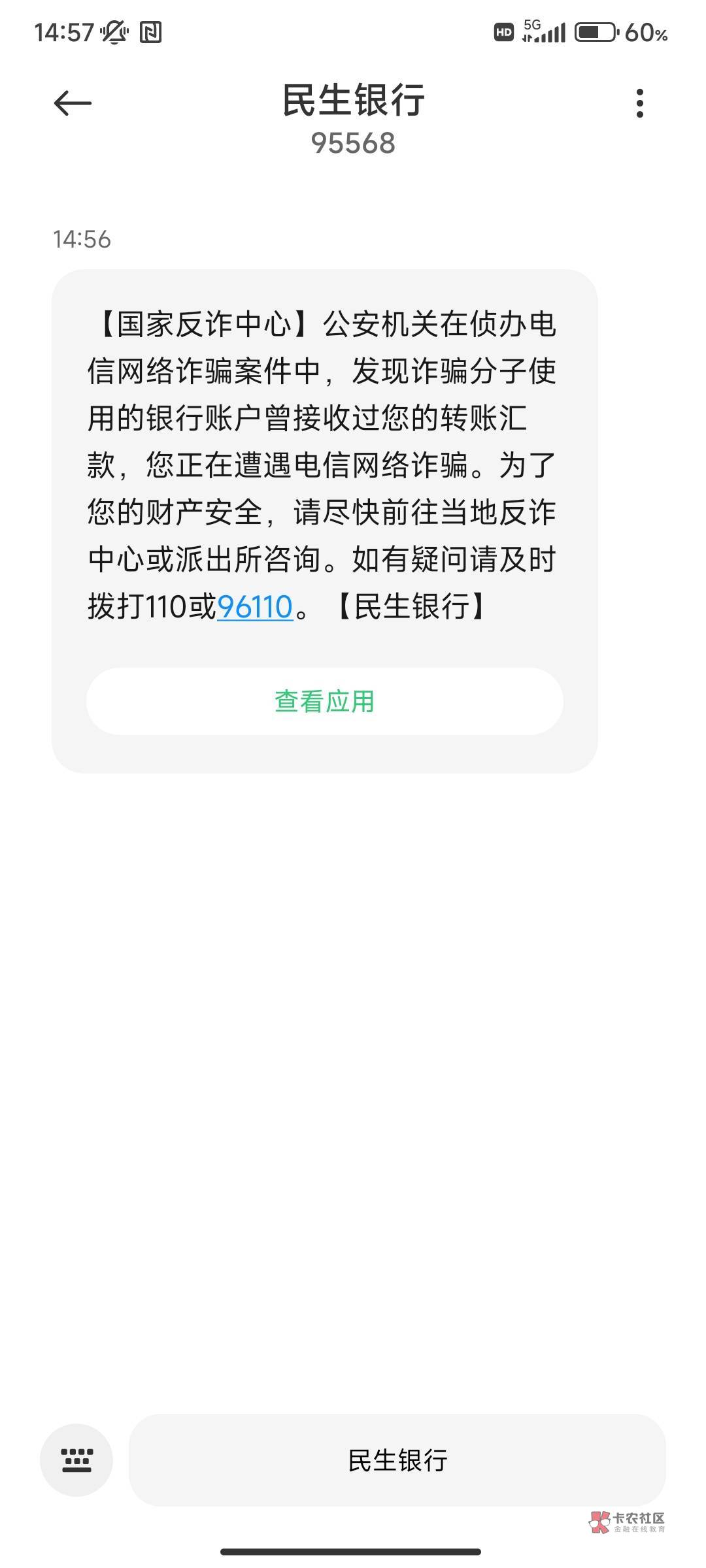 我也是昨天收到这短信,今天名下所有卡全部被封,包括电子二类,还好只是二天到三天
