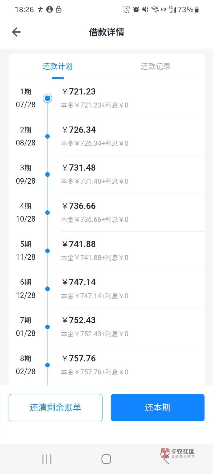 出来利息了,一天5块,等还几个月去投诉退权益卡的钱了