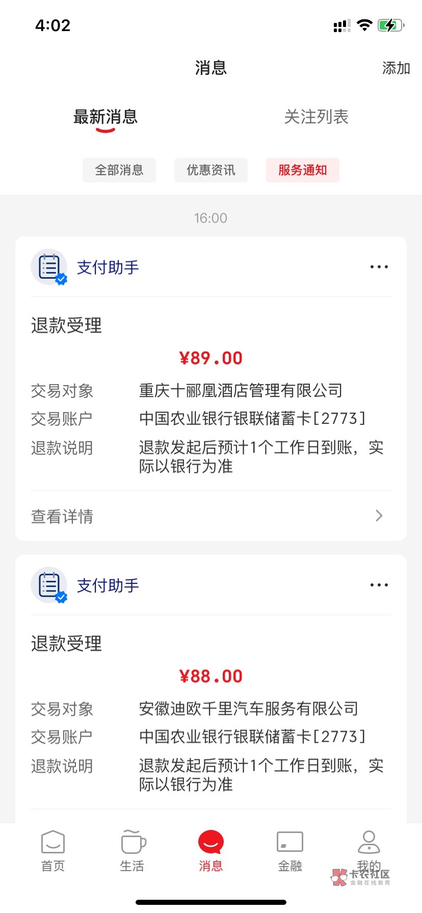 我就两笔,其他的过了一周了。
