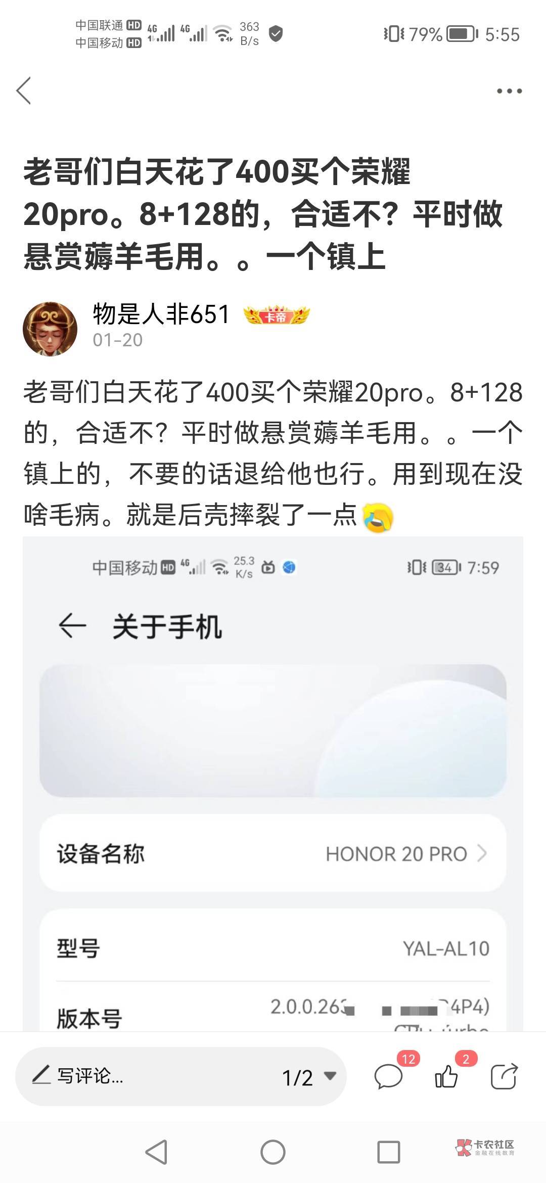 小地方咋说都有理。提前说好一切。我现在和你打字的,任务机,后壳战损版,但是原装。一年前400买的。荣耀20pro。麒麟980。。。还是很好用,别的不怕。就怕那种组装机。物是人非651 发表于 2023-07-16 05:51