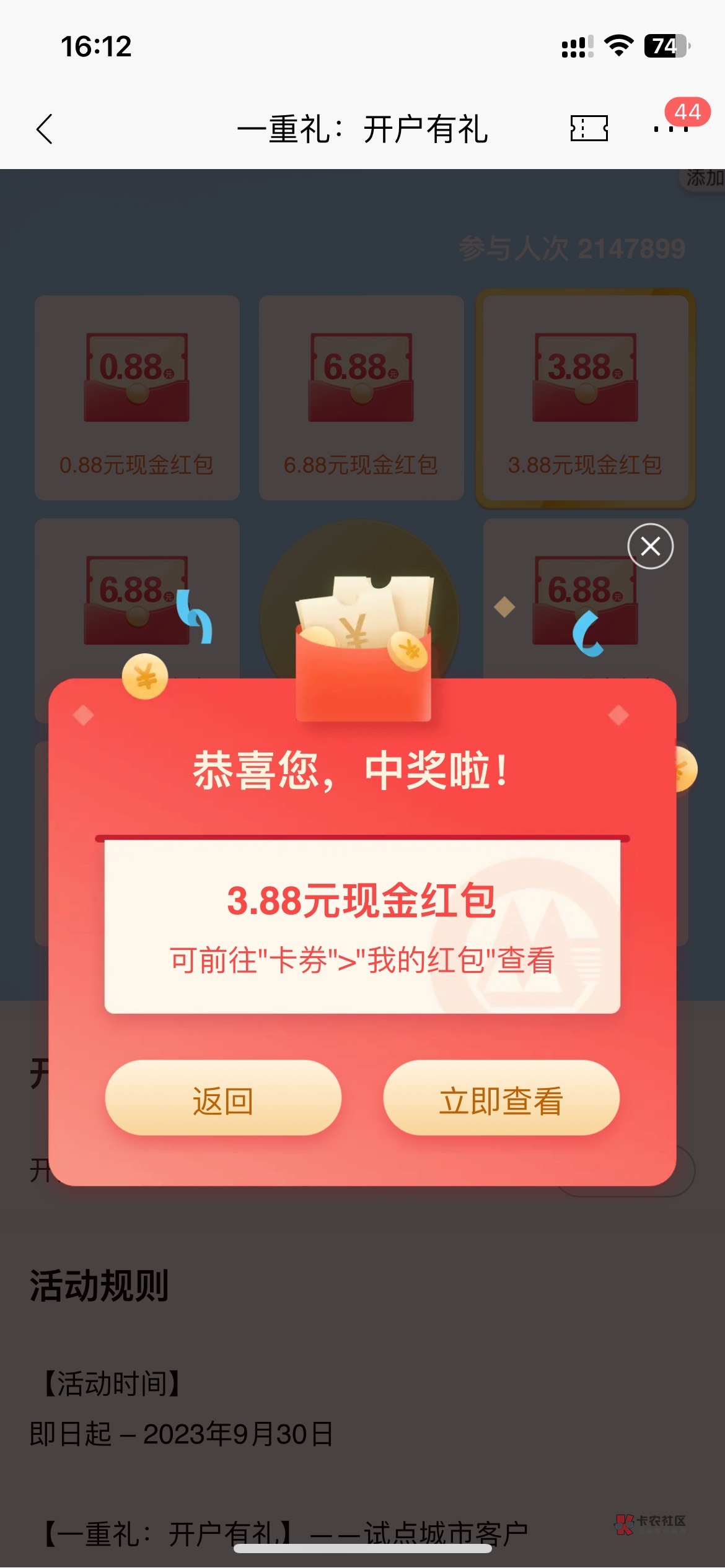 我0.88+100(柜员的红包)
