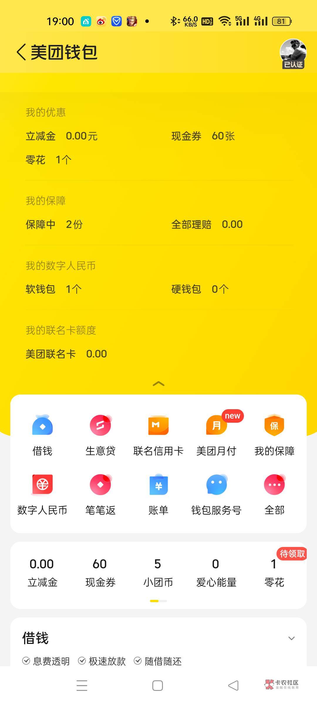 我以为你这也是零额度的美团卡,前俩天见了一个