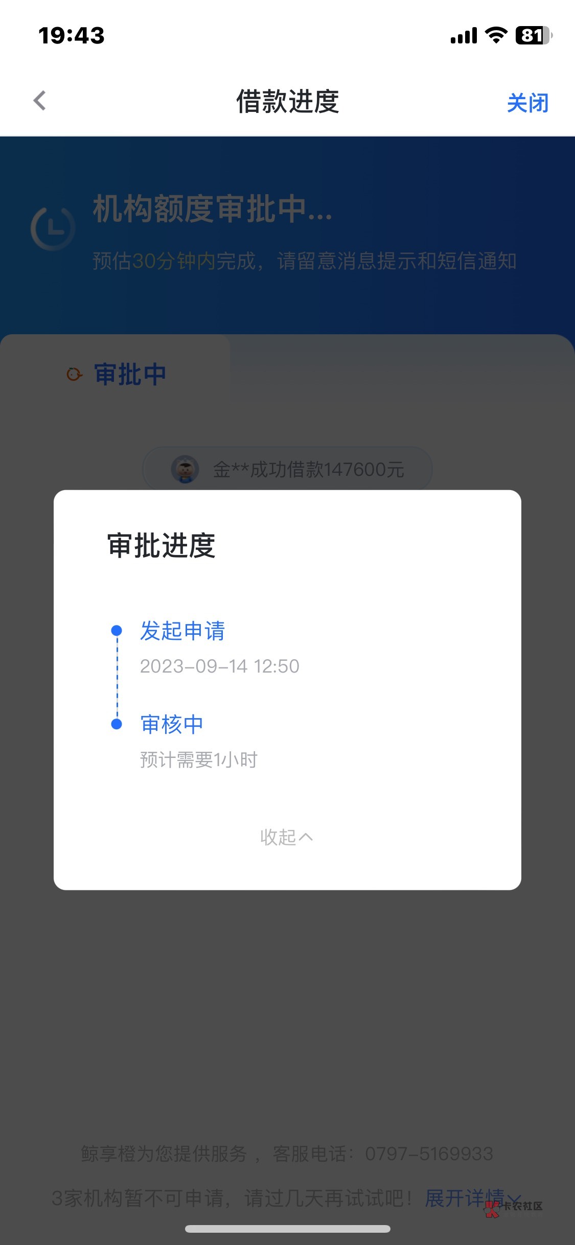 你我贷放款中多久到啊?十几天了