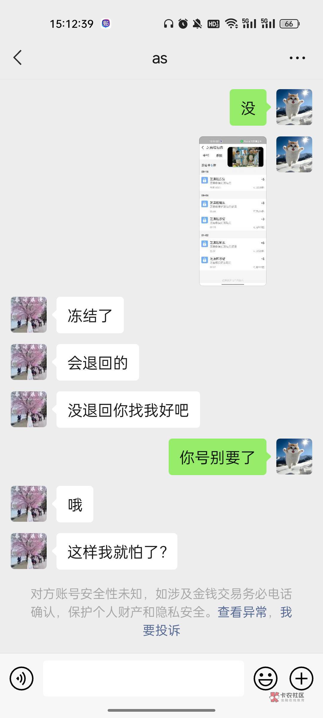 他是冻结,会退回