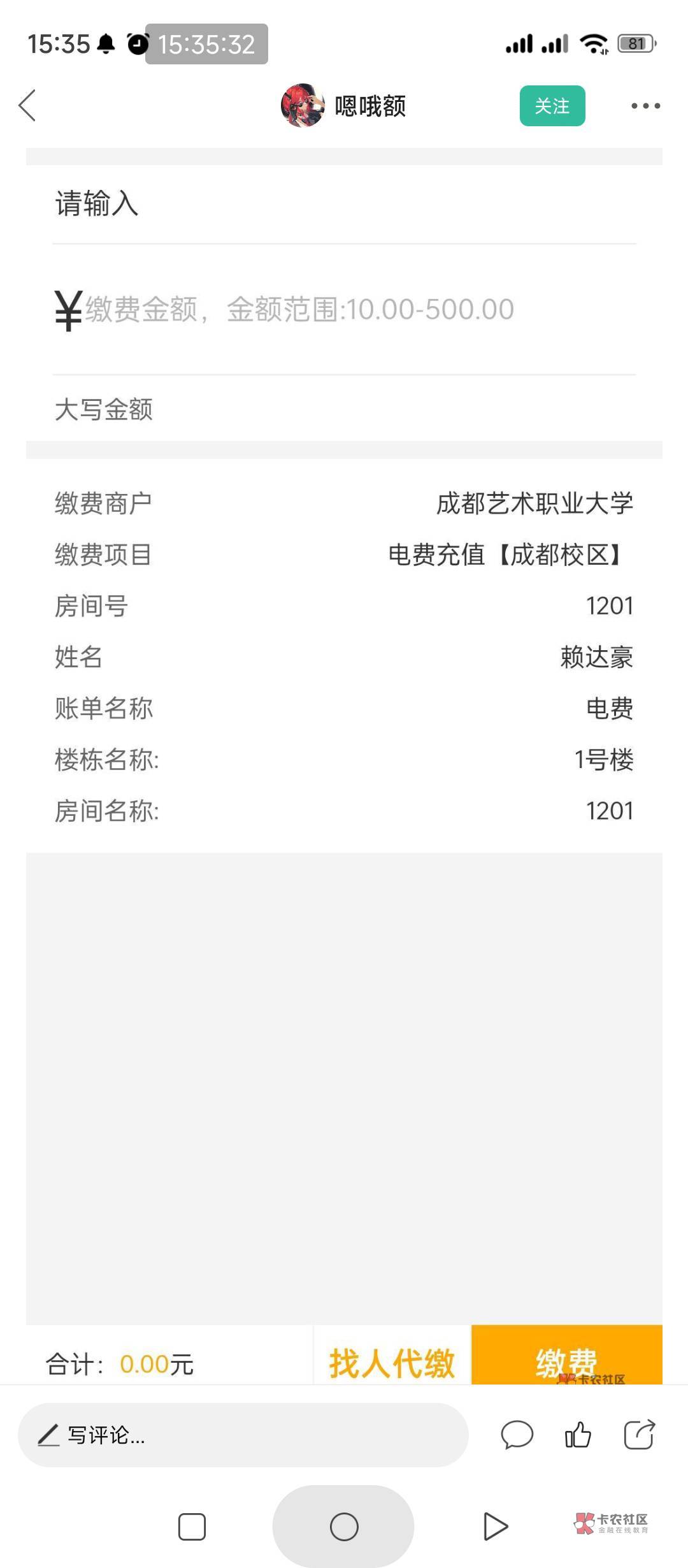 我去,这个户号是我随便填的啊,,四川自动减9块,