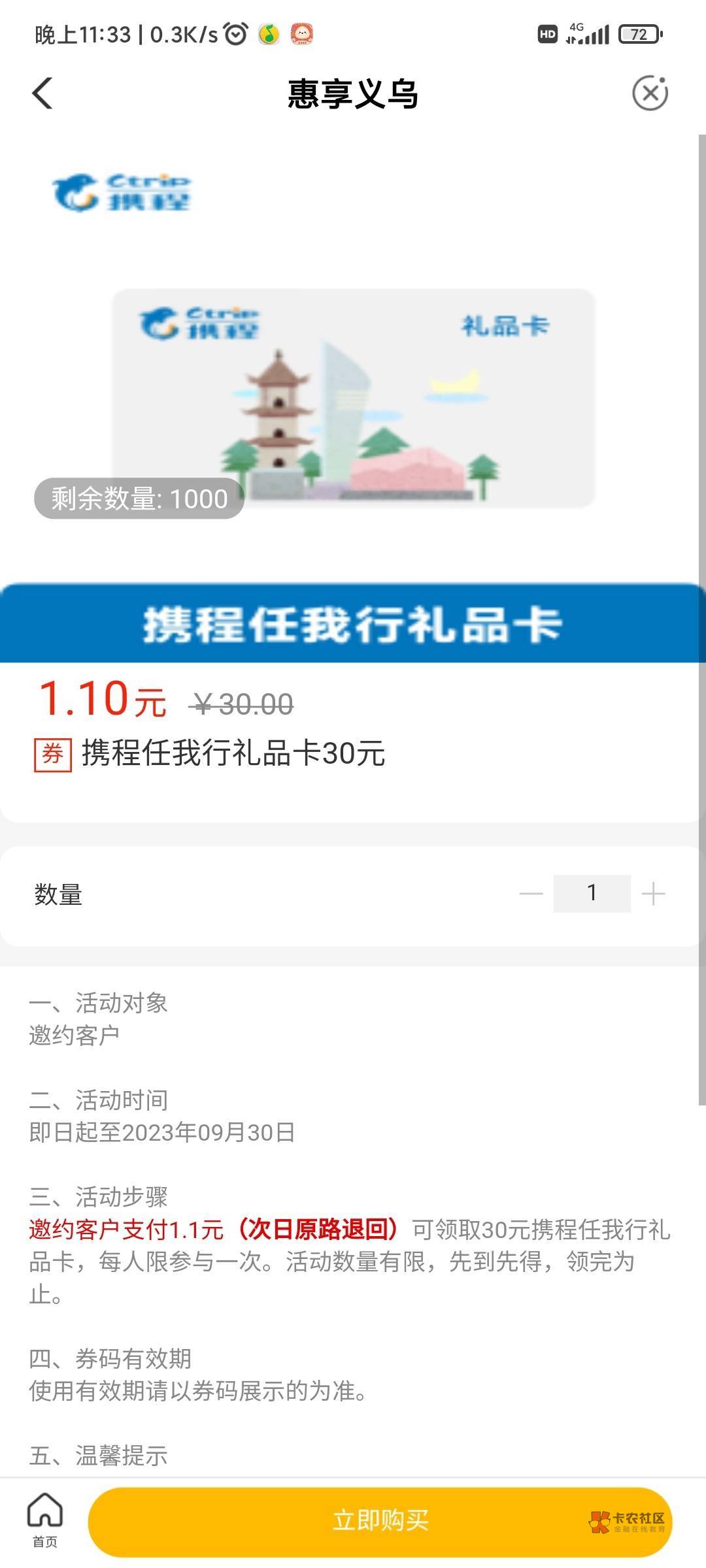 老农1.1买30元携程任我行礼品卡,买了以后闲卡宝98折出,利润20多,没有购买资格的就是不是特邀的,别叫