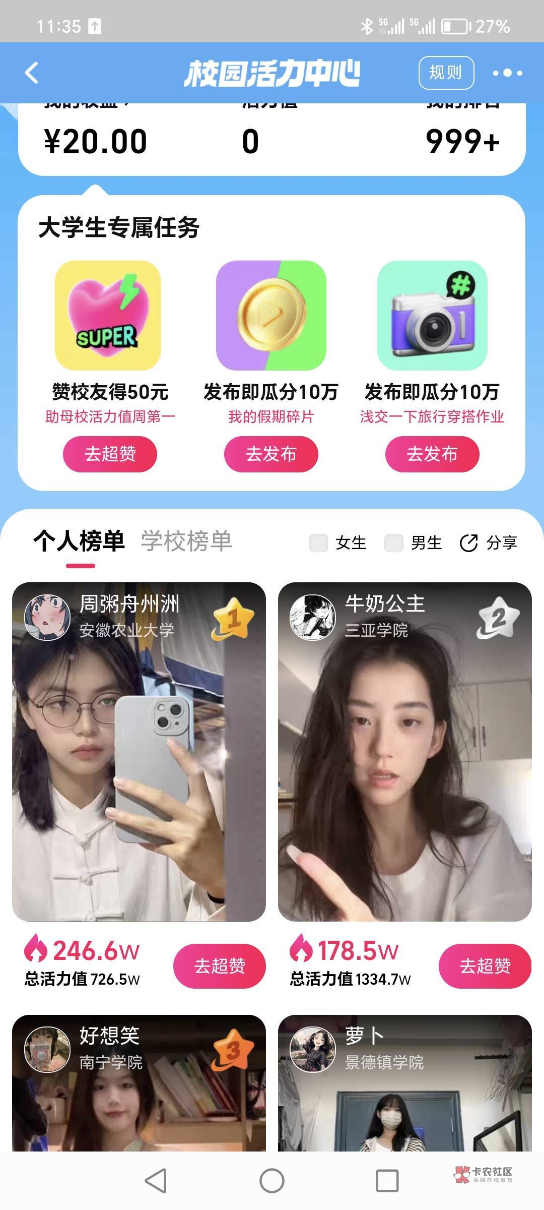 入口没有,你就去搜索那个校园活力王