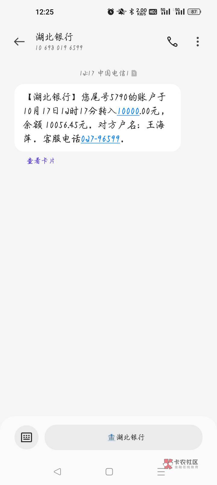 我就说莫名其妙收到1W转账啊,那张卡我很久没用了