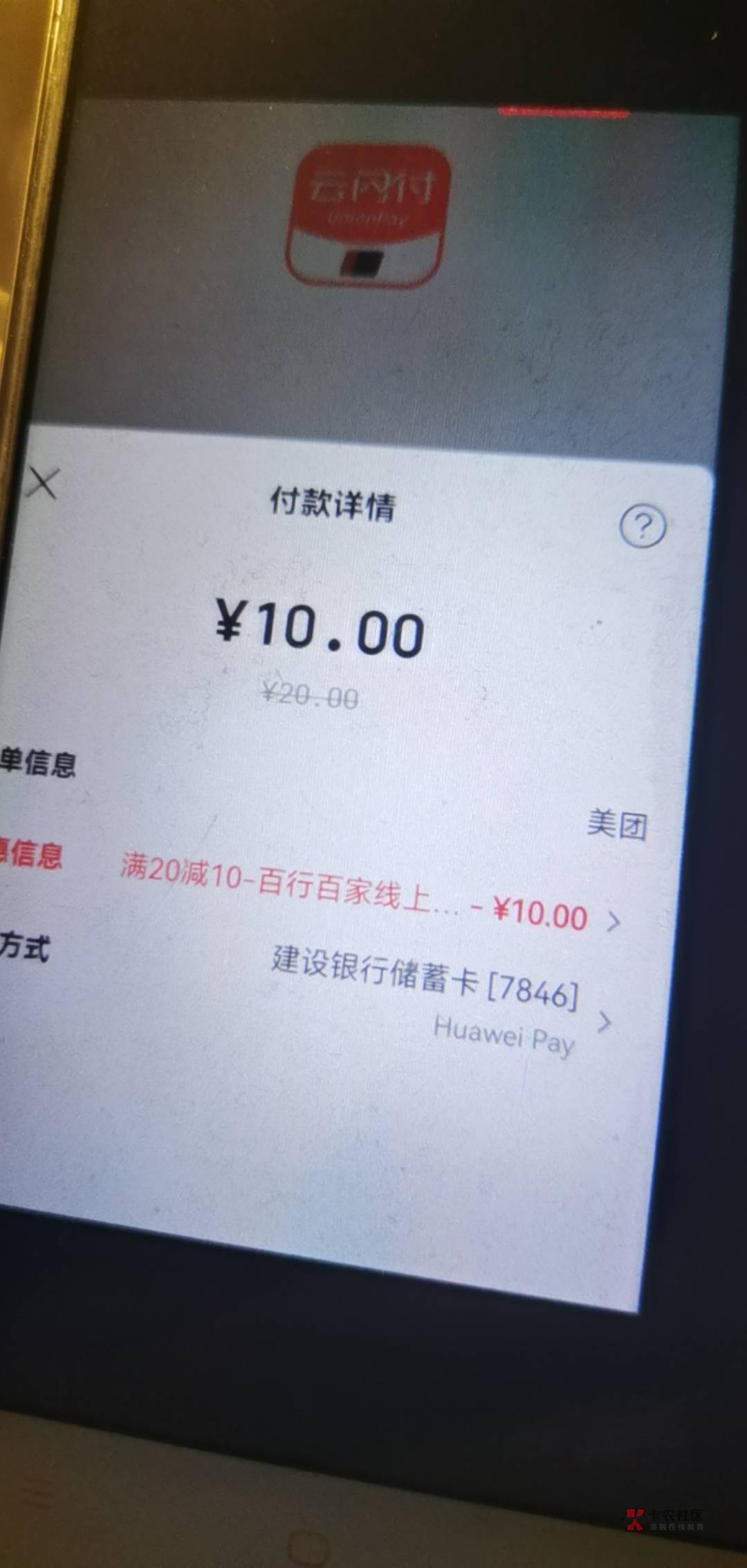 去美团单车充值余额,选择云闪付,下拉选择pay