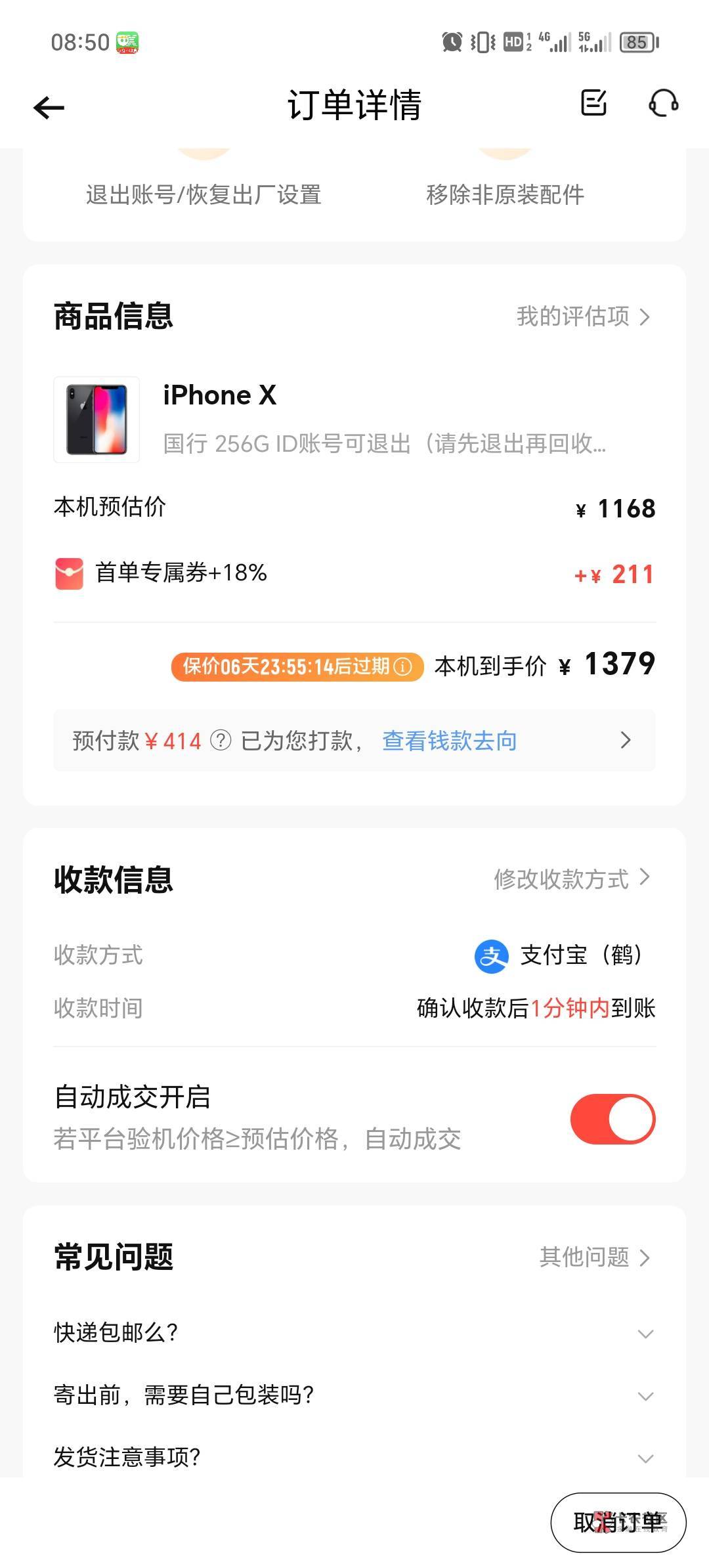 三天取消订单就行了,不用回收手机,逾期一周左右开始扣芝麻分