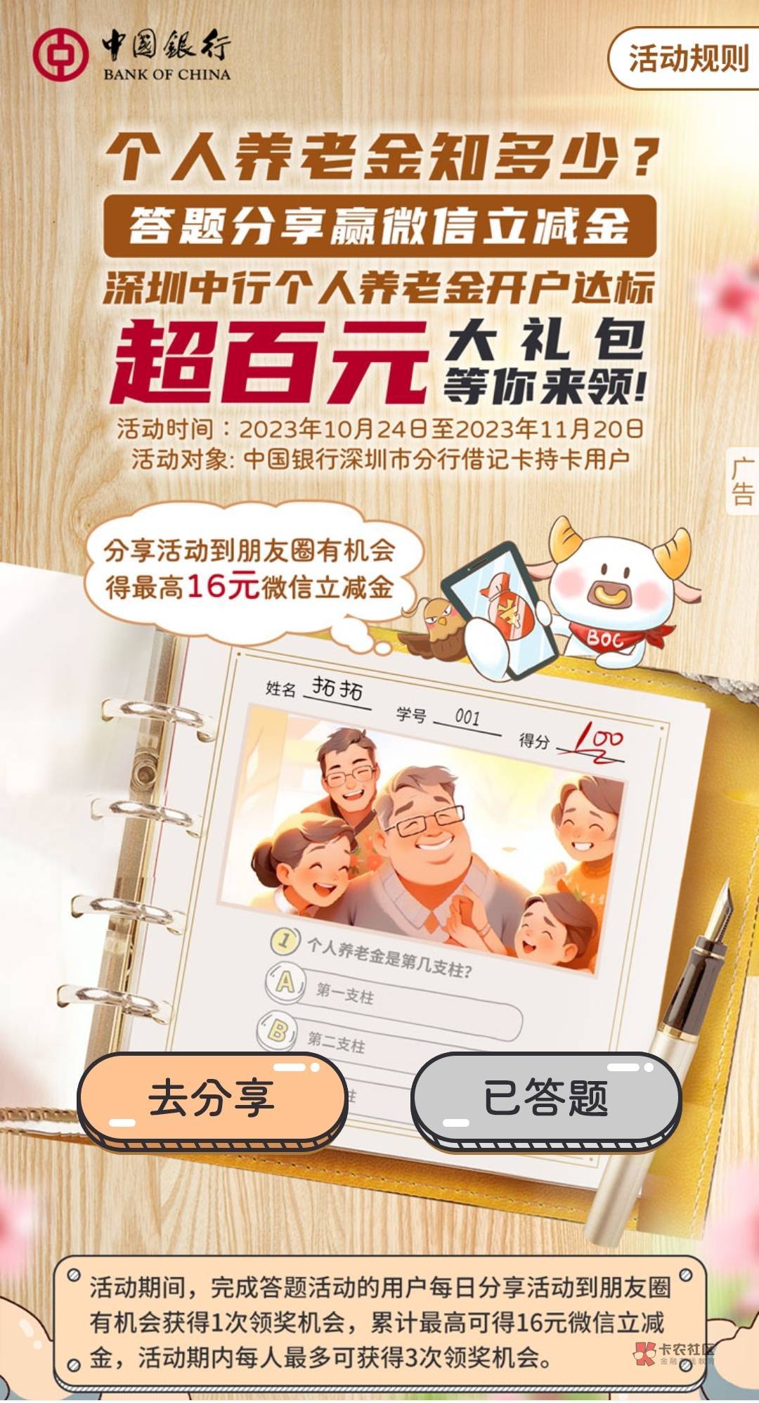 都说了没有活动,人家都发截图了。还在说进去答题!我们没有任务 根本就没有个人养老金我们。如果你有二维码就分享一下