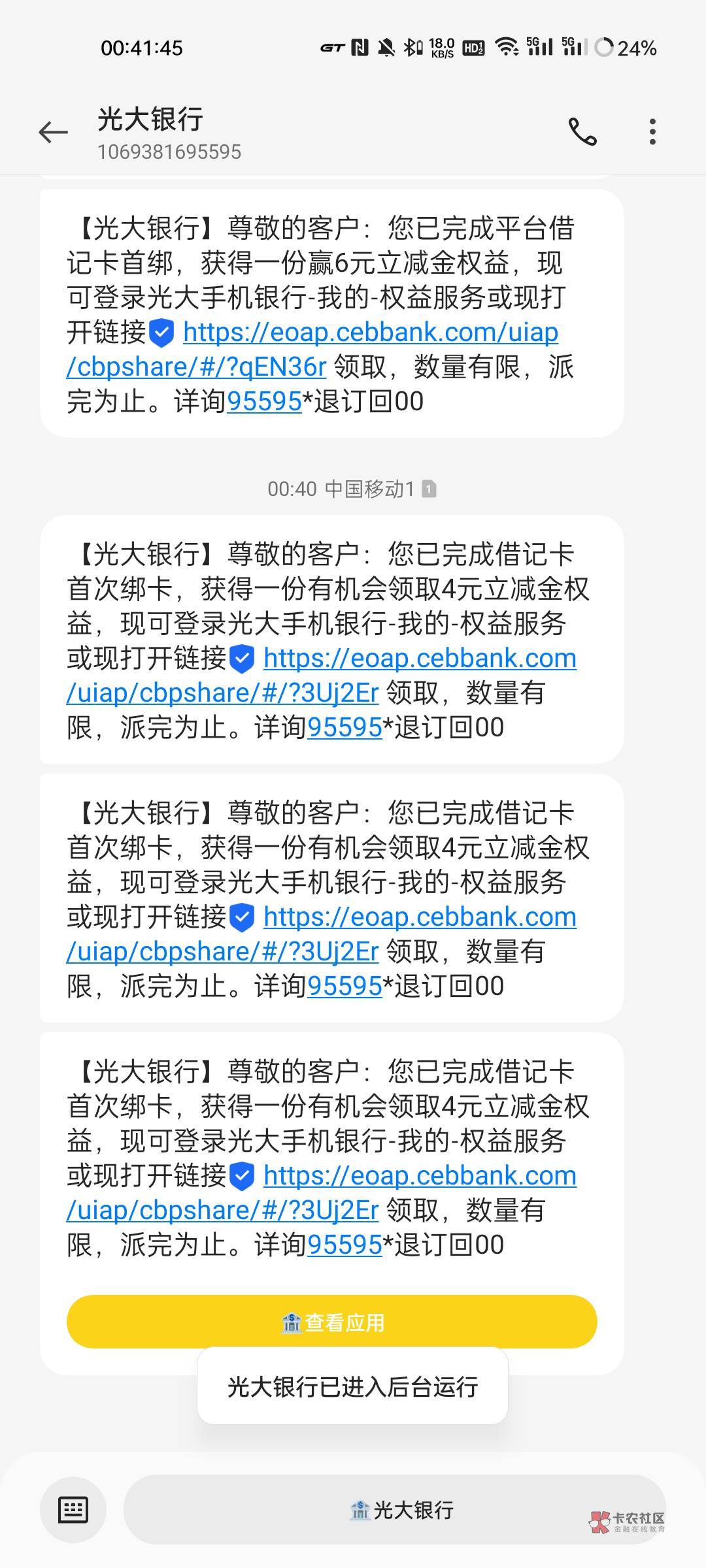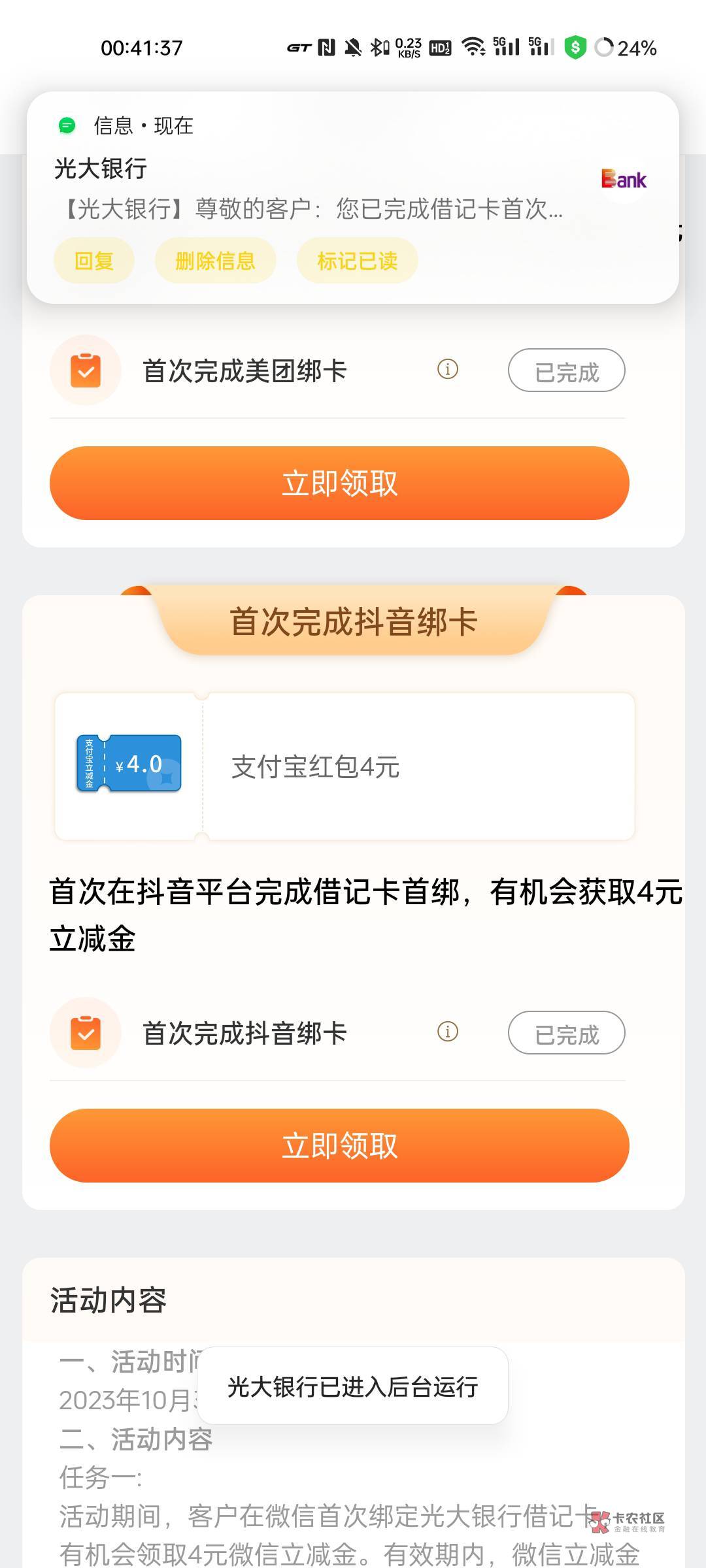 首绑的意思 之前绑定过其他光大卡也可以 听不懂开张新卡就全能领了