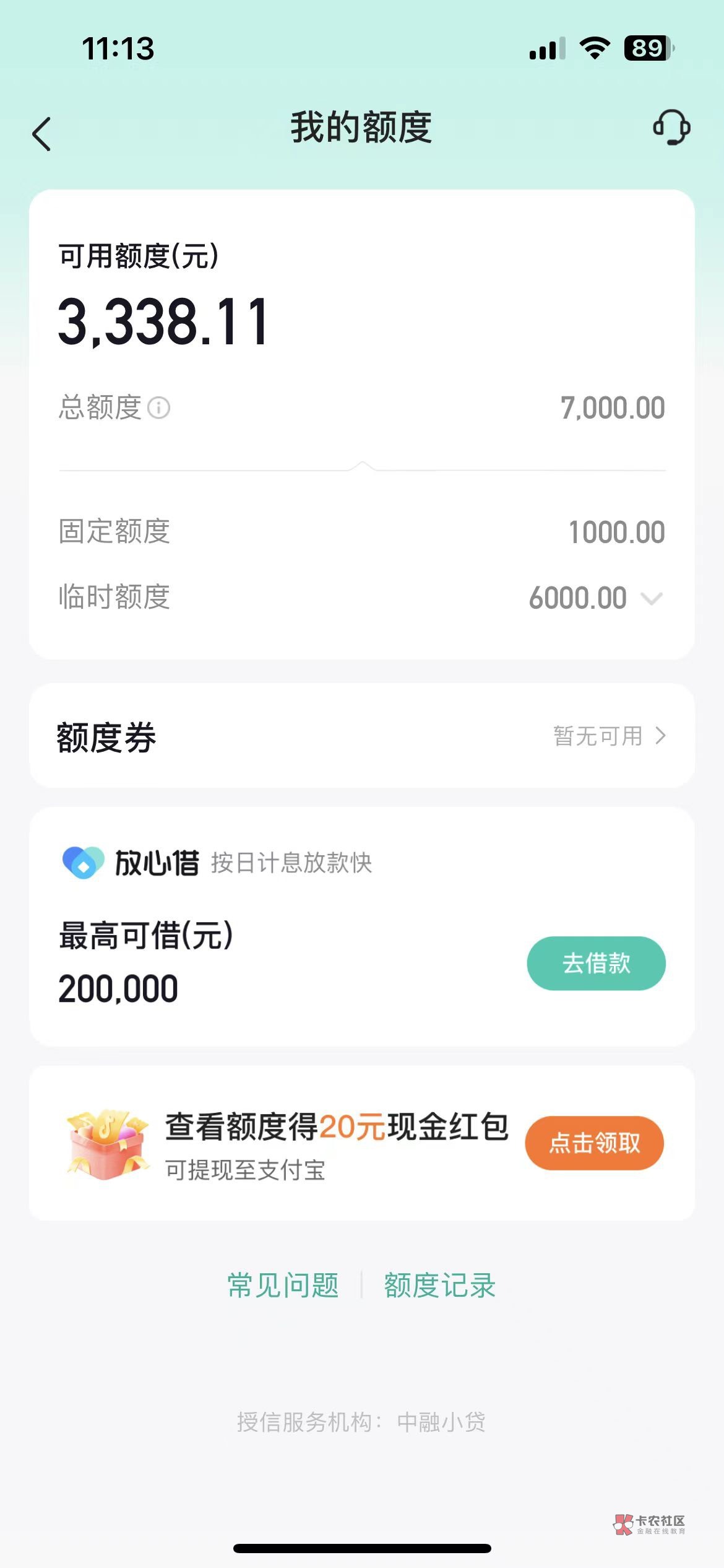 放心借都有20W额度,这不是白?