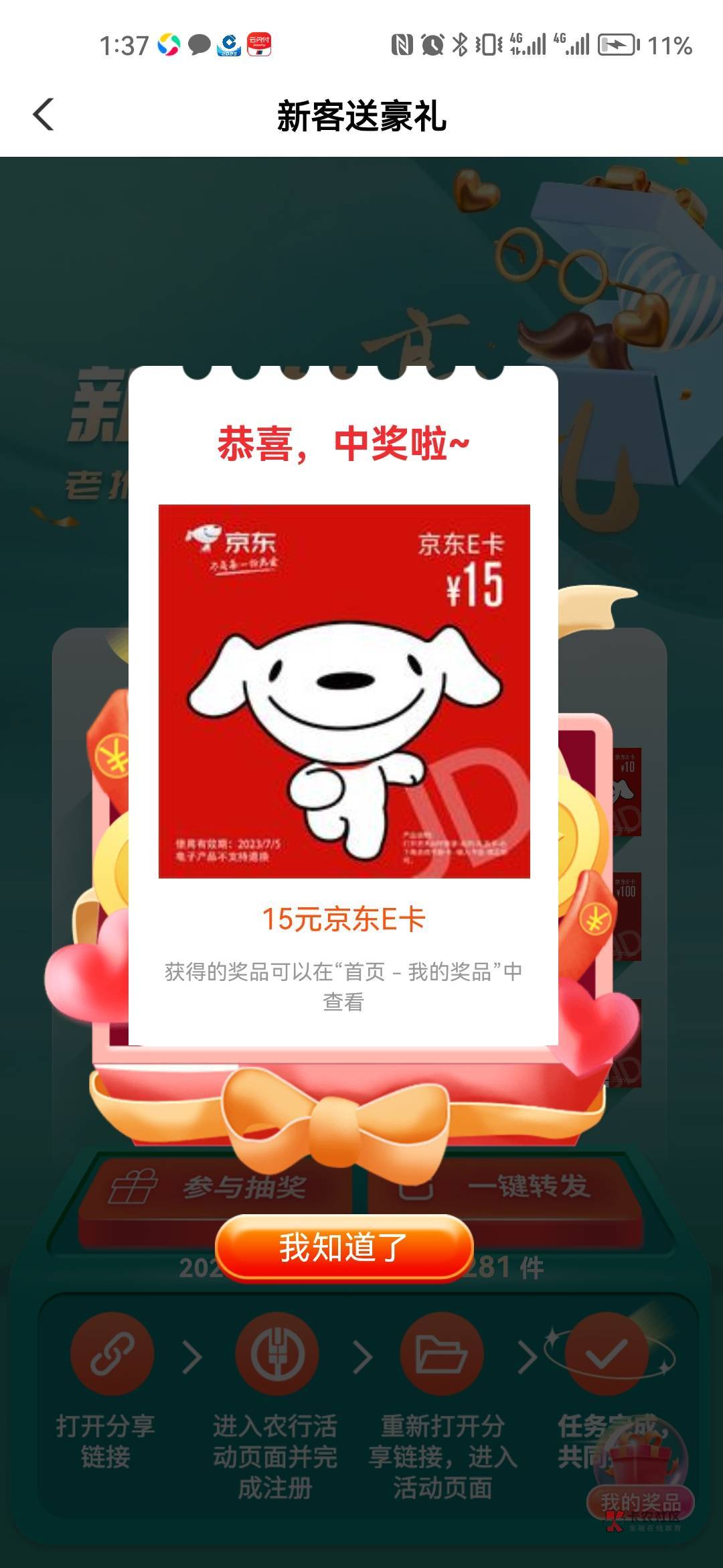 先中一个新客礼。破零了