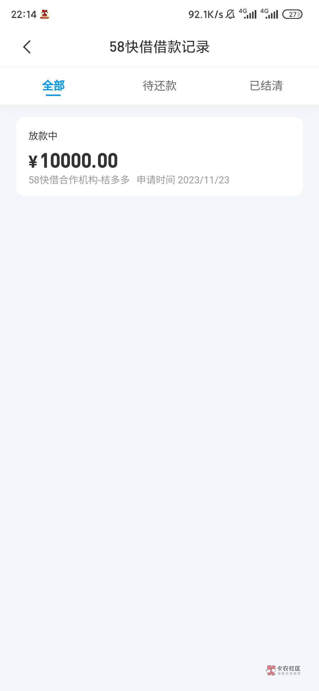 @卡农阿比 好的,老哥们,看你们发58好借,一年没下过款了,我也来试一下,匹配桔多多给1万额度,今天早 ...